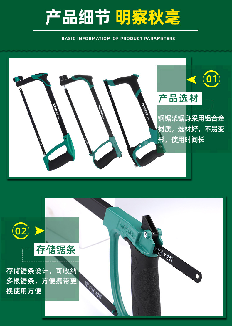 Takson 하드웨어 도구 목공 손 톱 손 톱 반자동 쇠톱 활 다기능 알루미늄 합금 쇠톱 프레임스토어 가기
