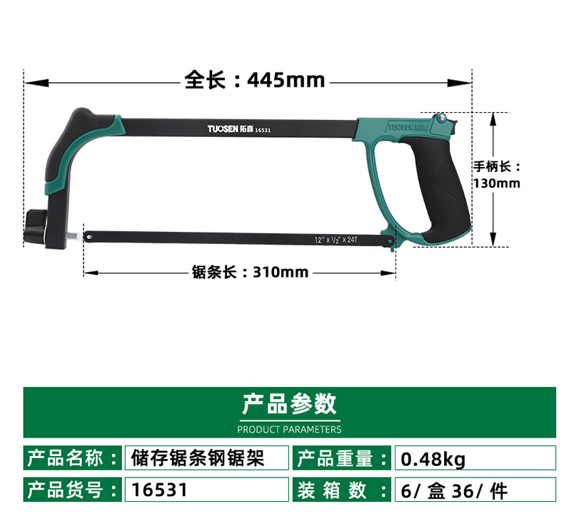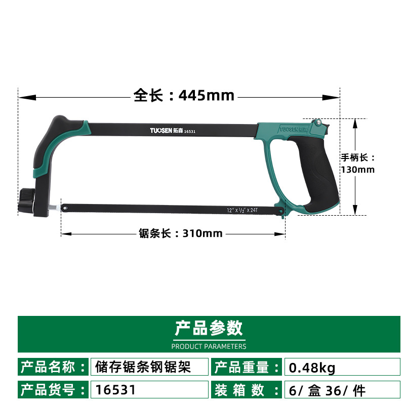 • 16531, 보관 톱날 쇠톱 프레임, 6/상자 36/조각, 0.48kg