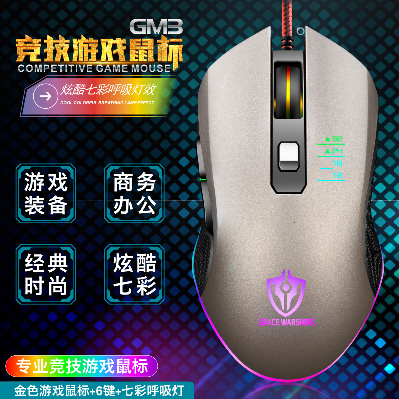 电竞机械大鼠标有线游戏usb电脑通用发光变速6D滑鼠跨境现货代发批发