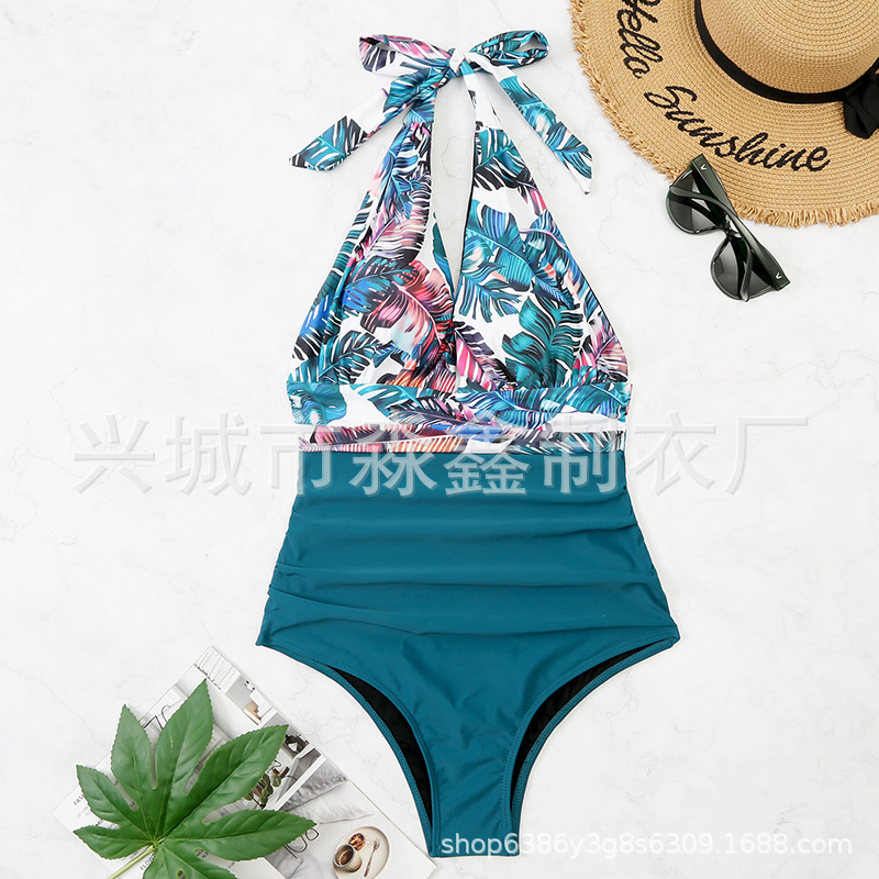새로운 대외 무역 유럽과 미국의 폭발적인 수영복 여성 원피스 등이없는 섹시한 보수적 배꼽 덮는 국경 비키니 수영복 도매스토어 가기