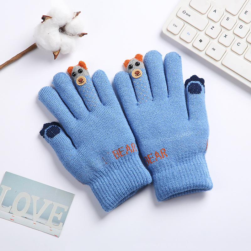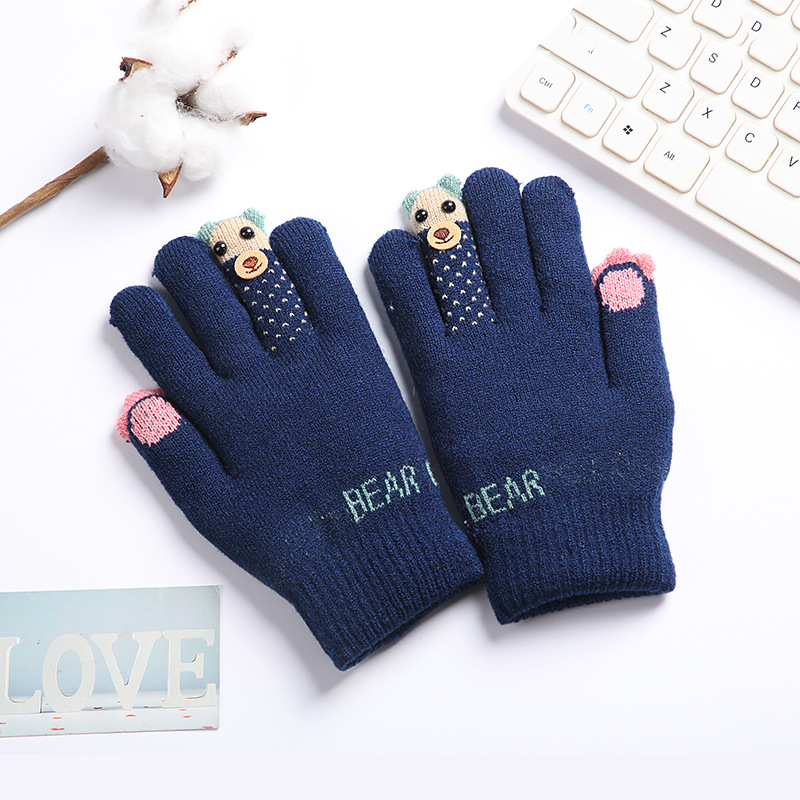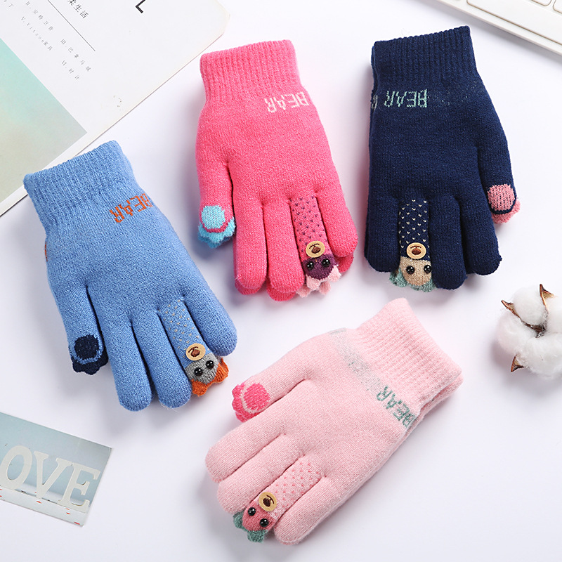 어린이 장갑 겨울 다섯 손가락 기모 따뜻한 새 소년 귀여운 손가락 곰 소녀 손가락 학생 타고 조수