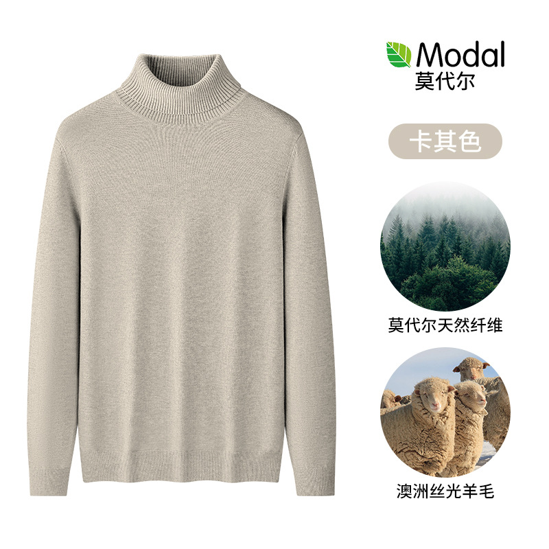 하이넥 모달 남성 스웨터 가을 겨울 기모 두꺼운 원피스 벨벳 이너웨어 한국 스타일 긴팔 니트 남성용