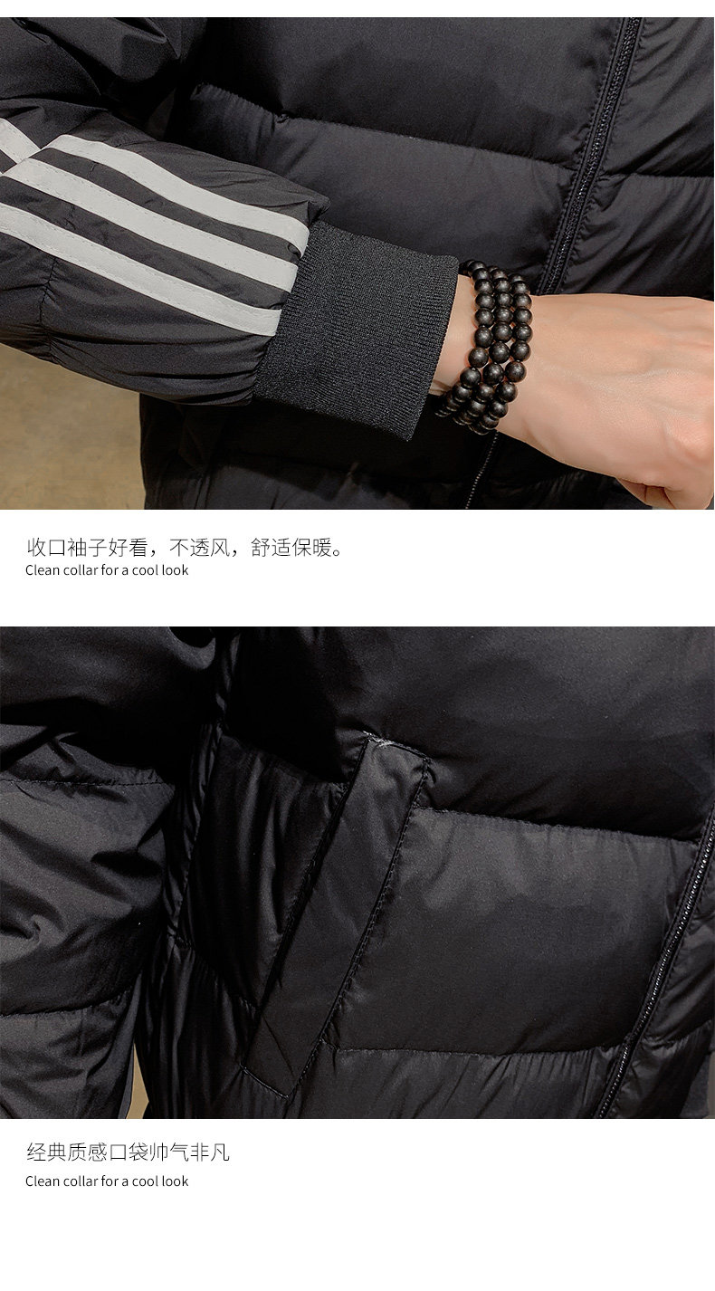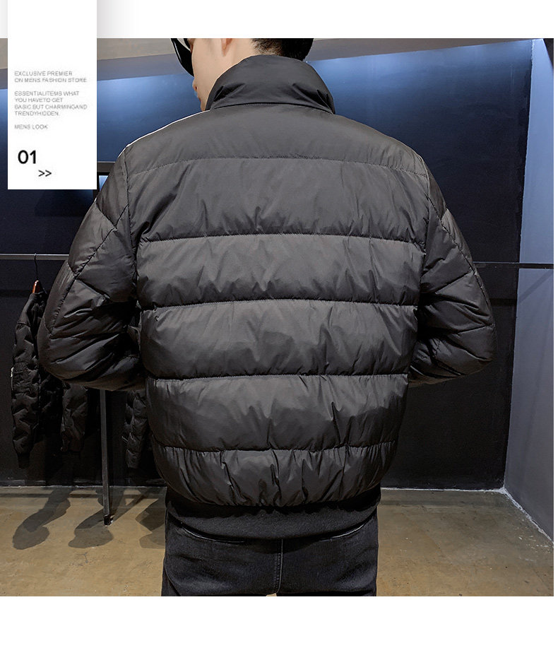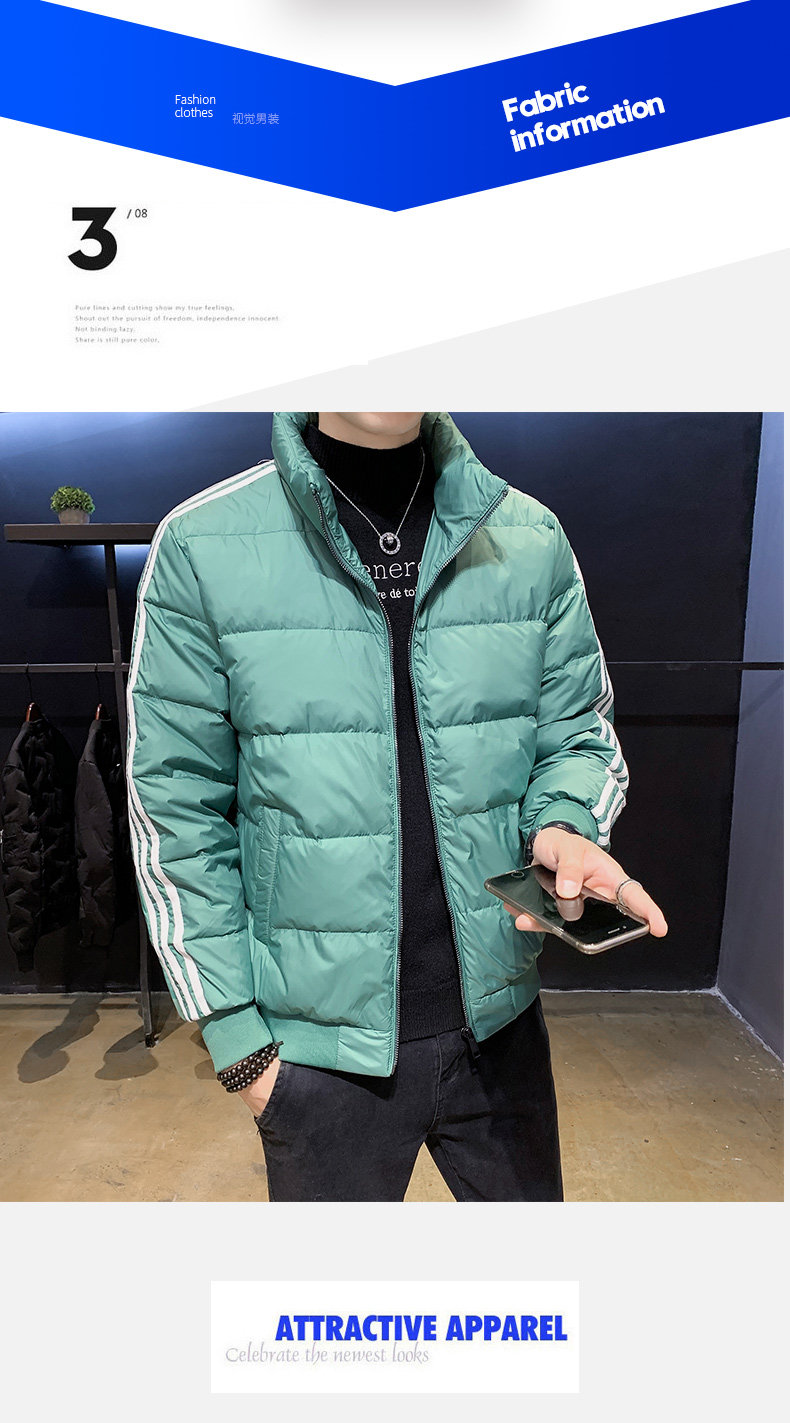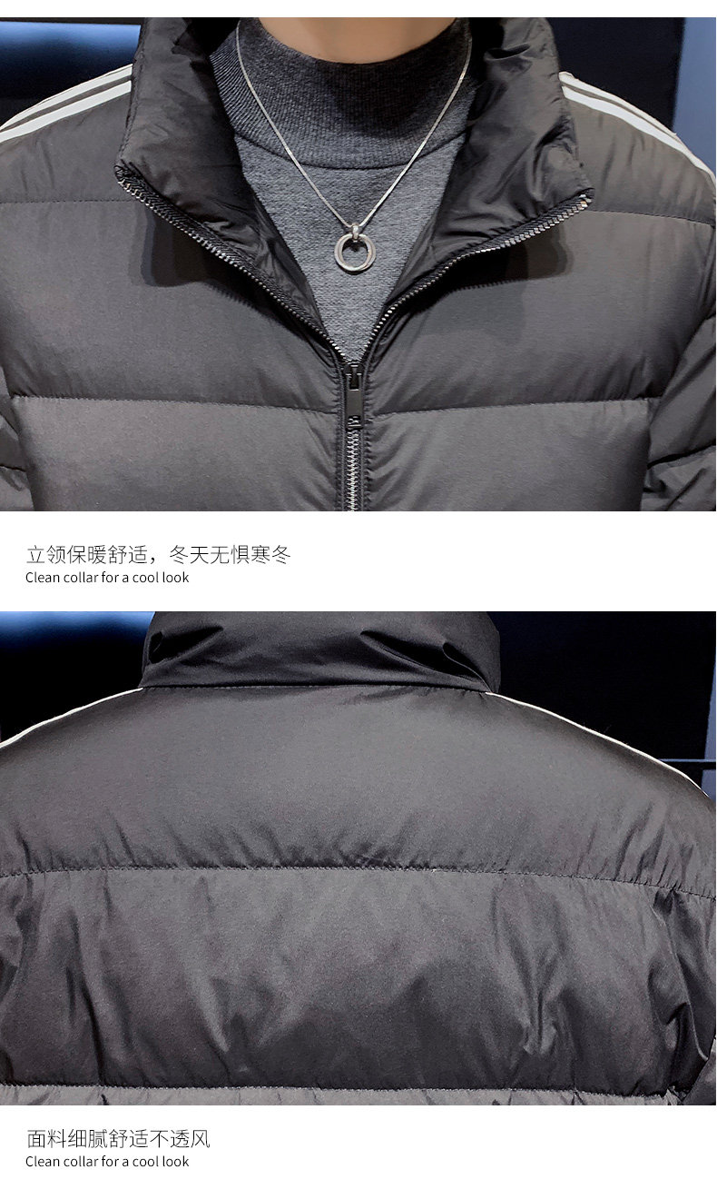 겨울 짧은 남자 남자 한국 캐주얼 스트라이프 다운 재킷 스탠드 칼라 유행 화이트 오리 다운 코트스토어 가기