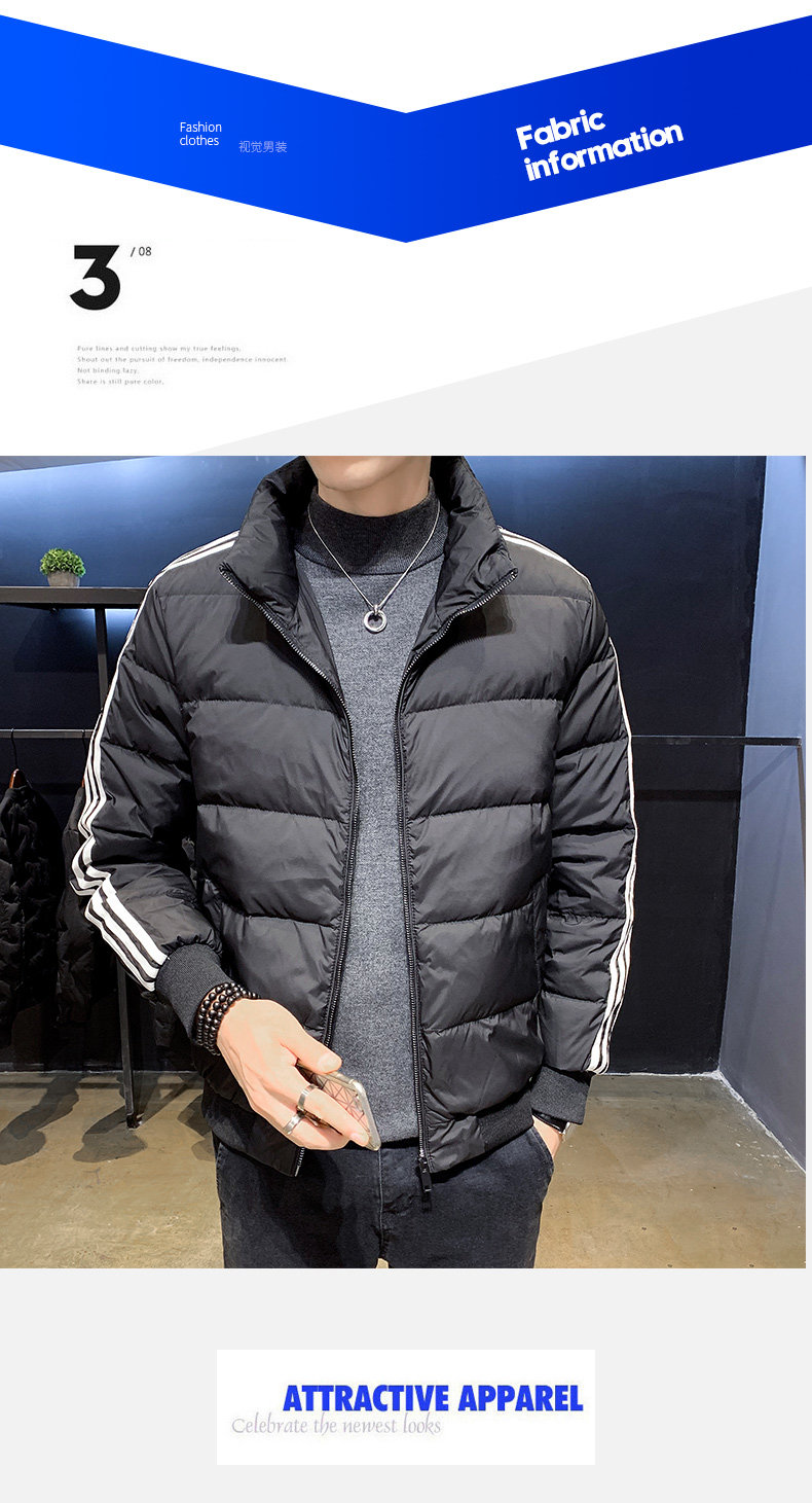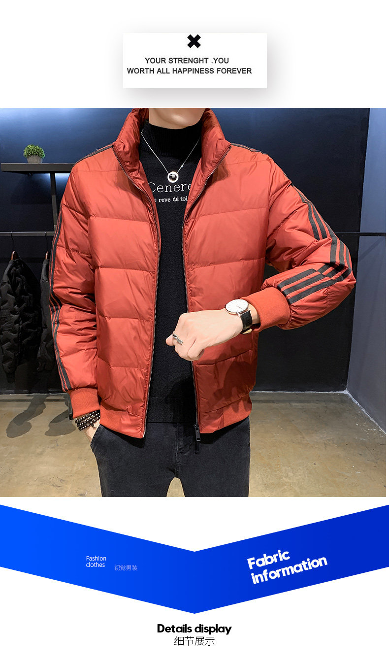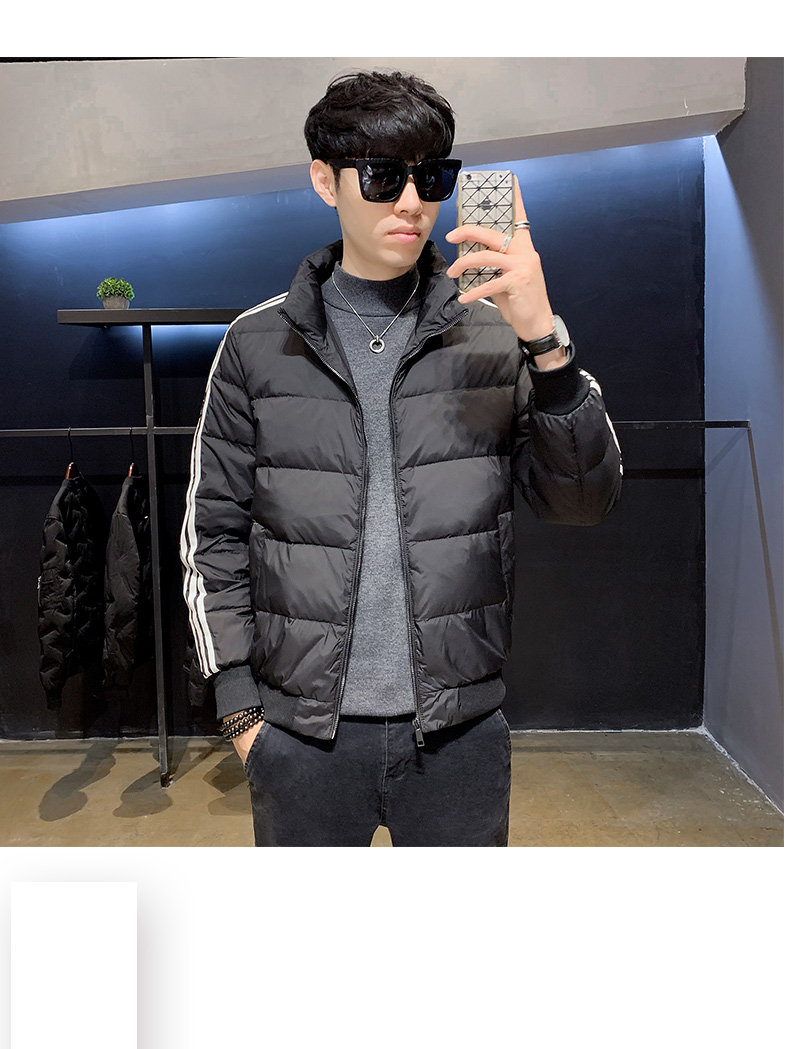 겨울 짧은 남자 남자 한국 캐주얼 스트라이프 다운 재킷 스탠드 칼라 유행 화이트 오리 다운 코트