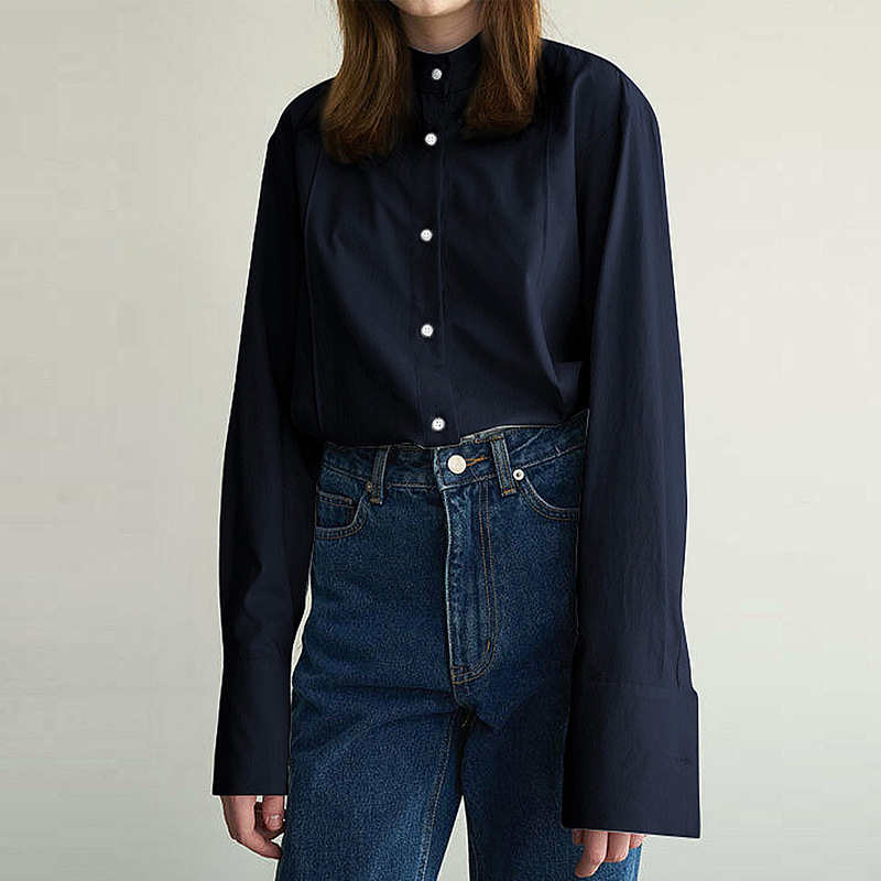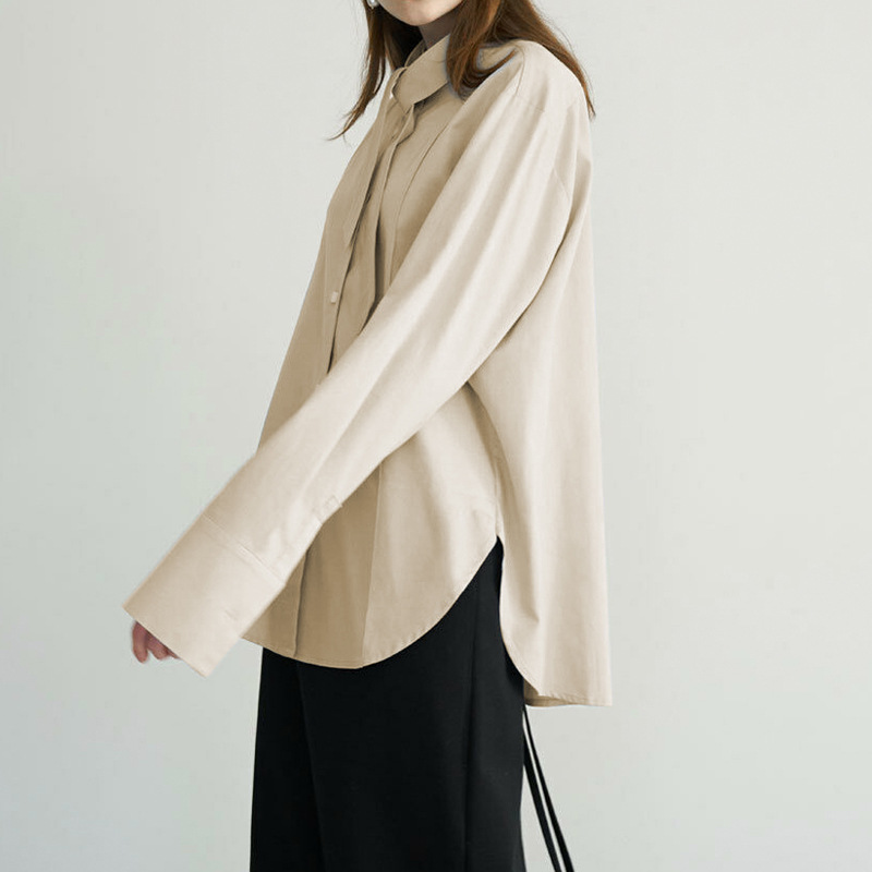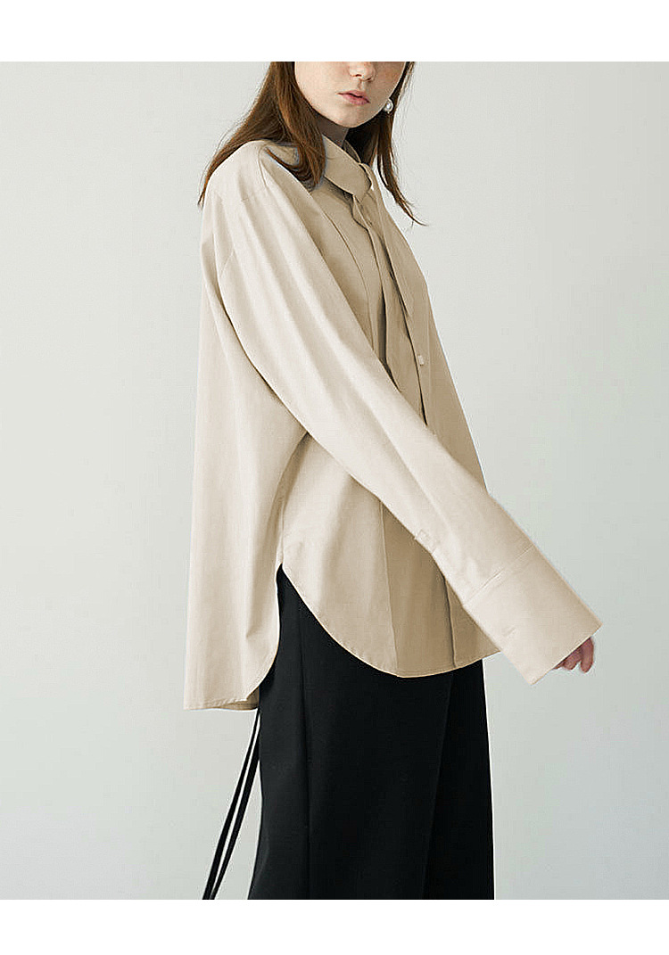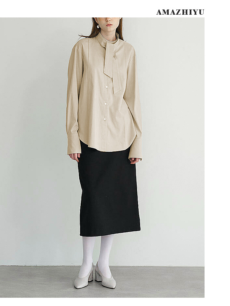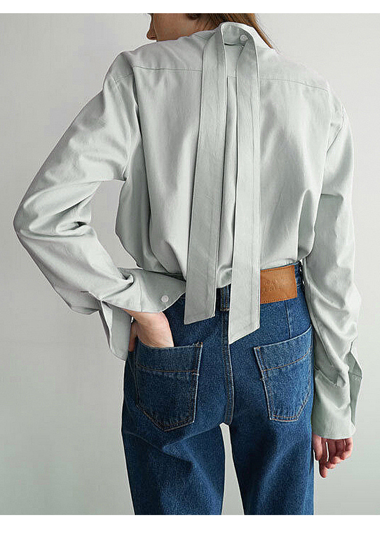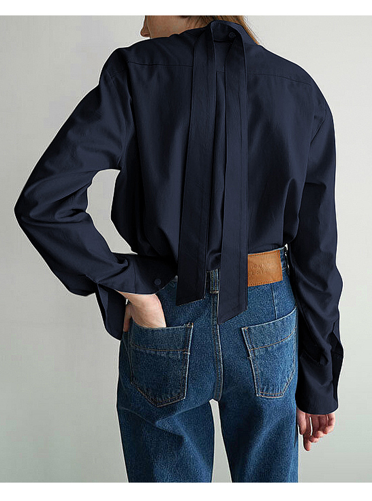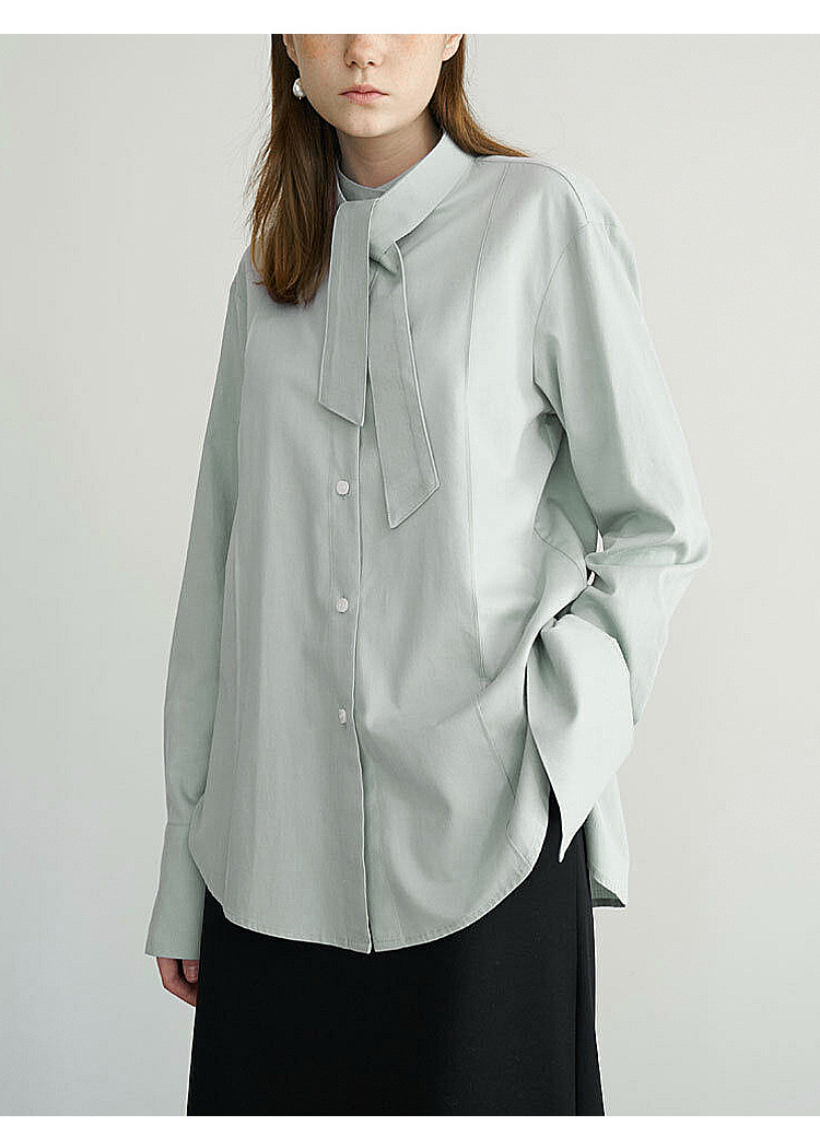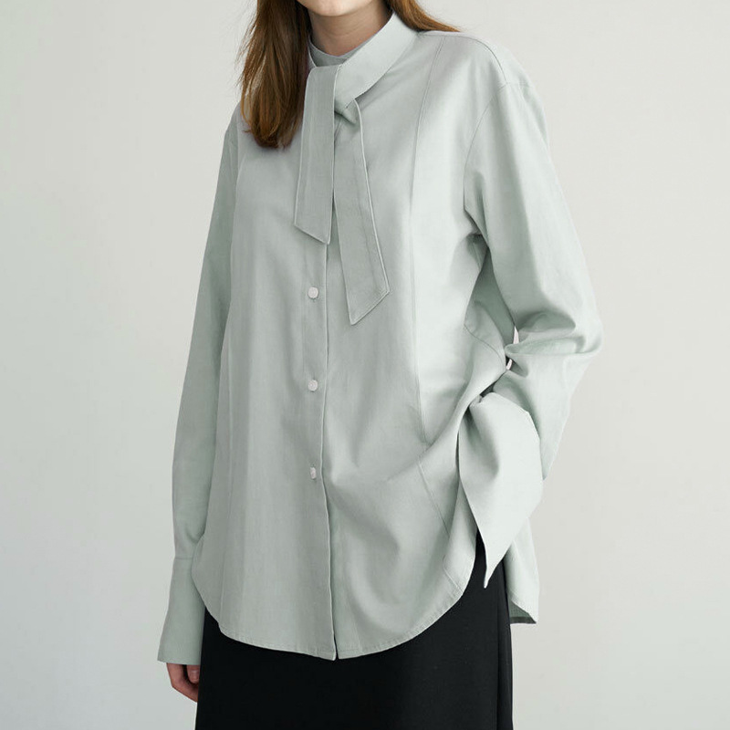 【클리어런스】순면 셔츠, 독특한 리본 칼라 레이스업 셔츠, 순면 루즈핏 직각 어깨 셔츠 여성용