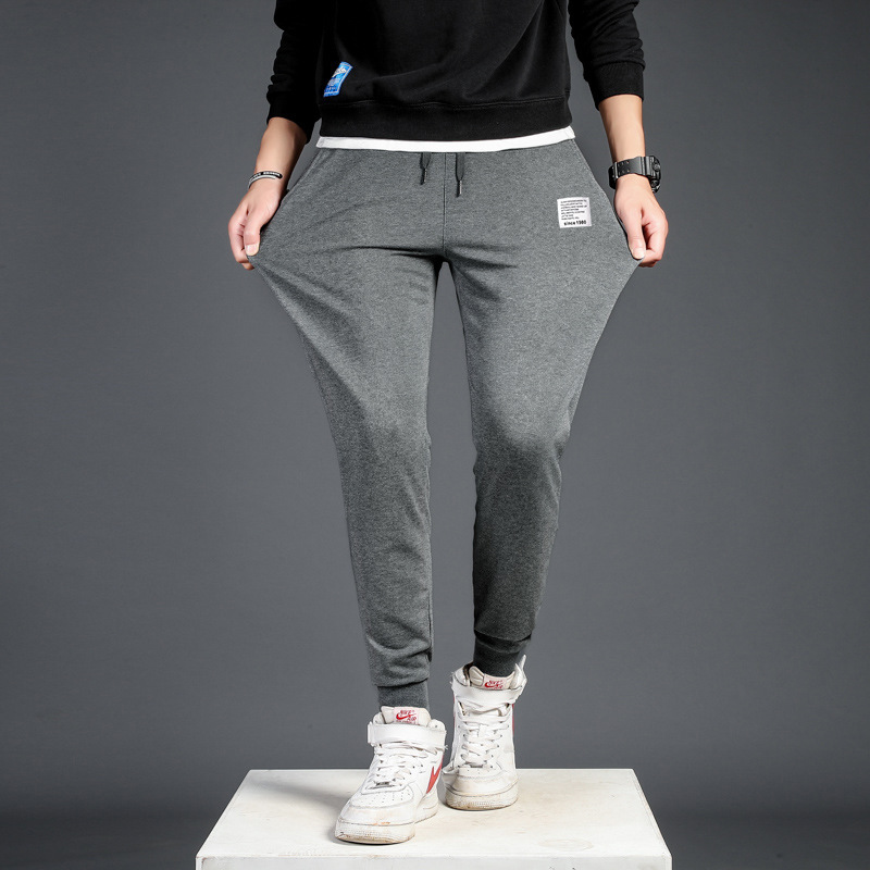 공장 직공급 면 스포츠 바지 남성용 심플 만능 바지 캐주얼 한국식 스웨트 팬츠 발목 바지 인쇄 트렌드