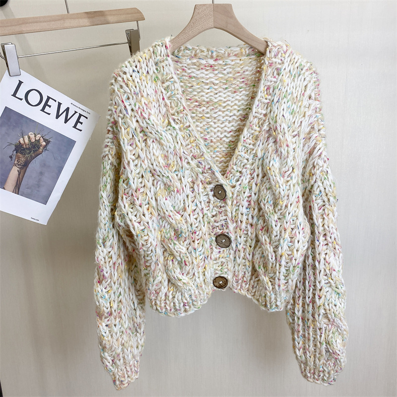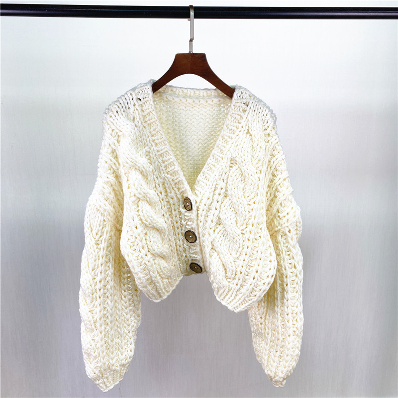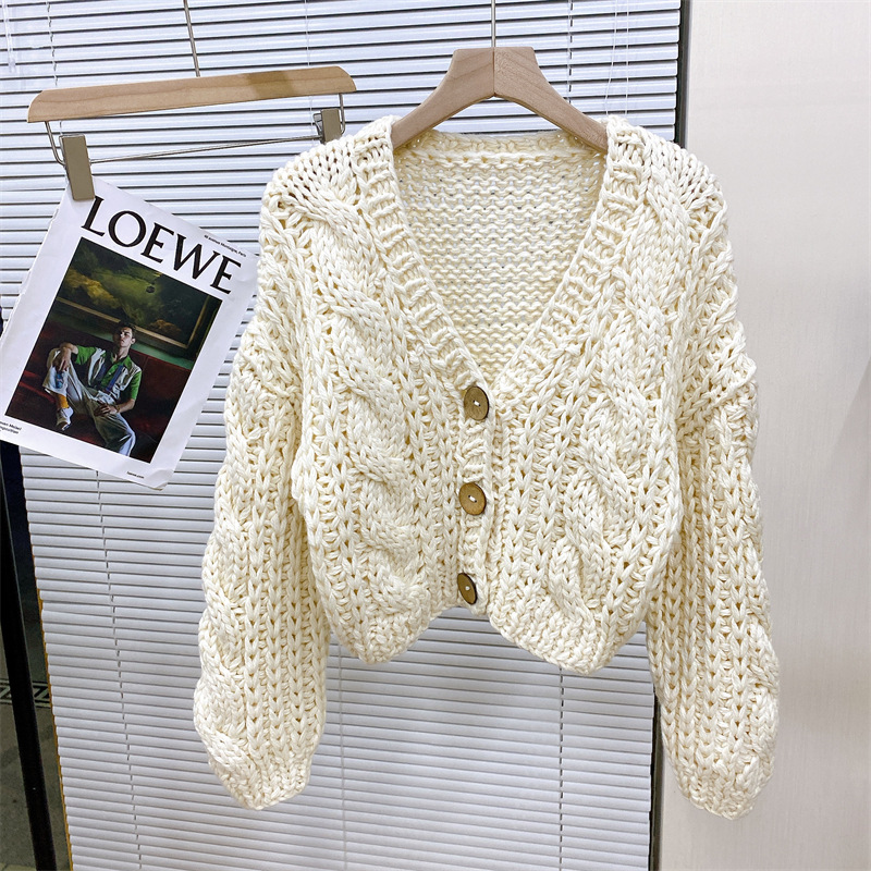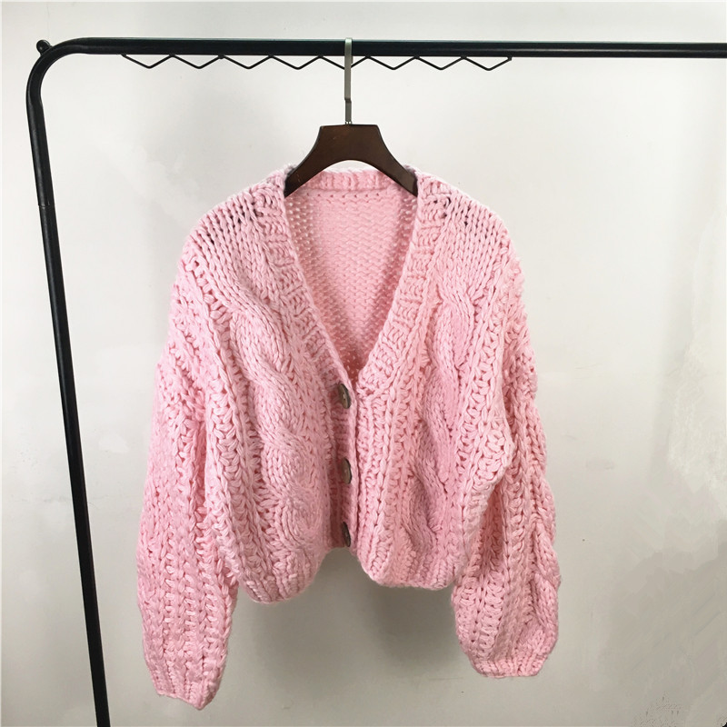 가을과 겨울 핑크 소녀 새로운 수제 트위스트 두꺼운 짧은 니트 카디건 느슨한 스웨터 코트 여성용 탑스토어 가기