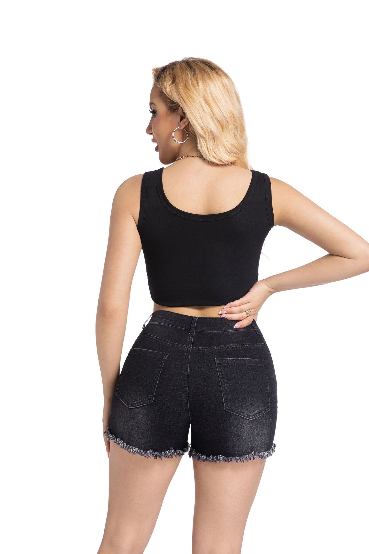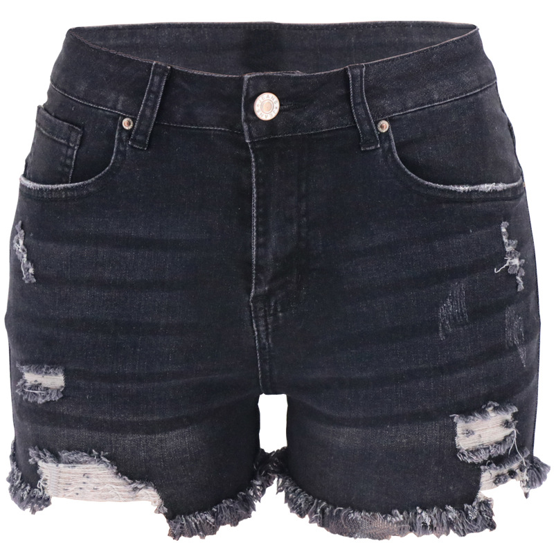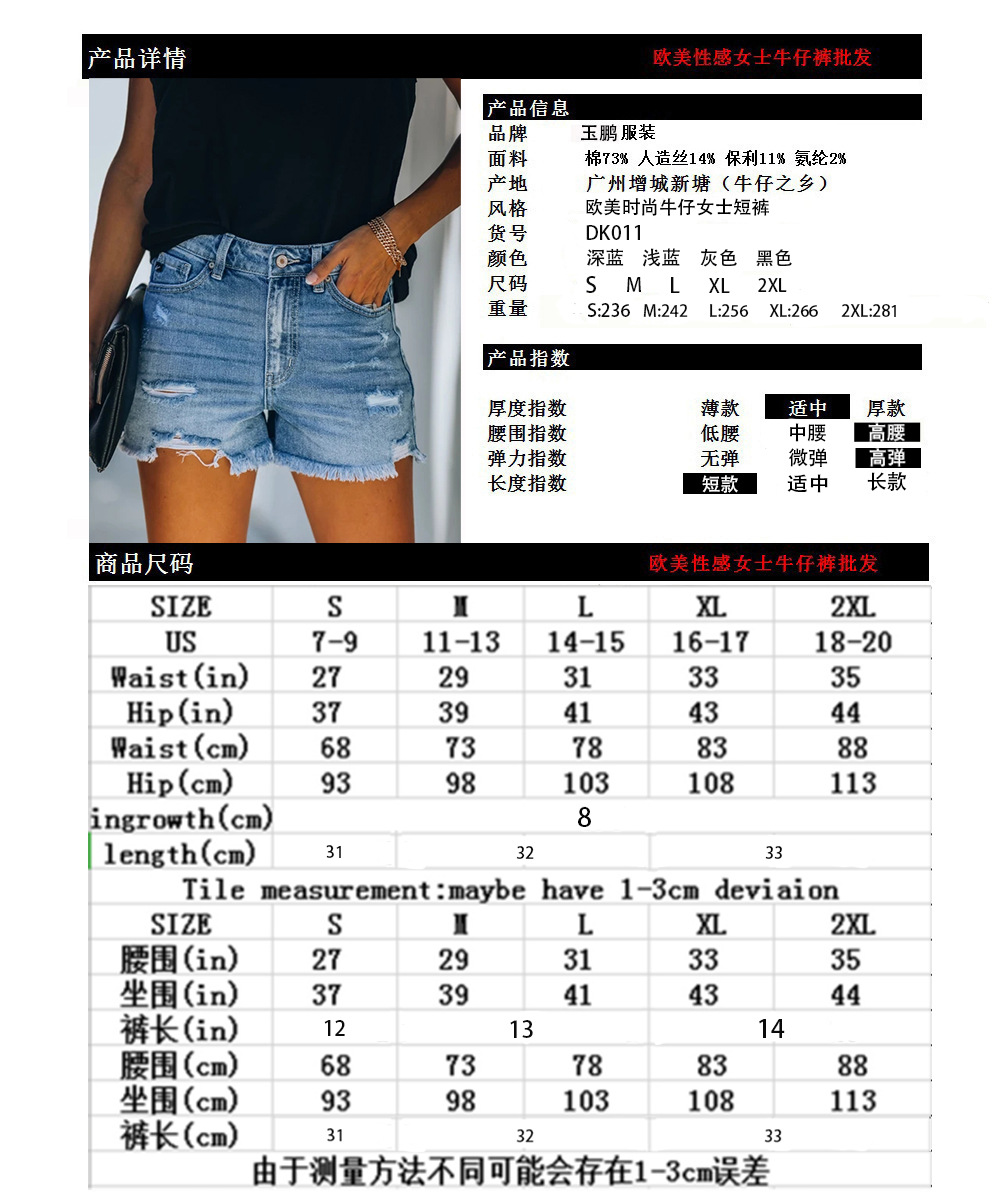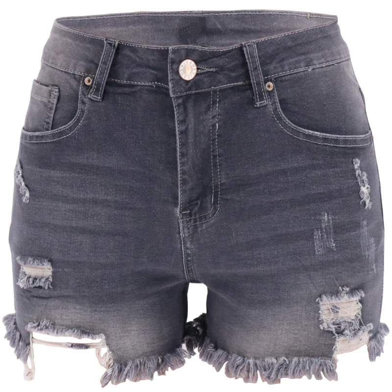 새로운 재고 직공급 아마존 WISH 크로스 보더 전자 상거래 플랫폼 4 색 홀 하이 웨이스트 여성용 데님 반바지스토어 가기
