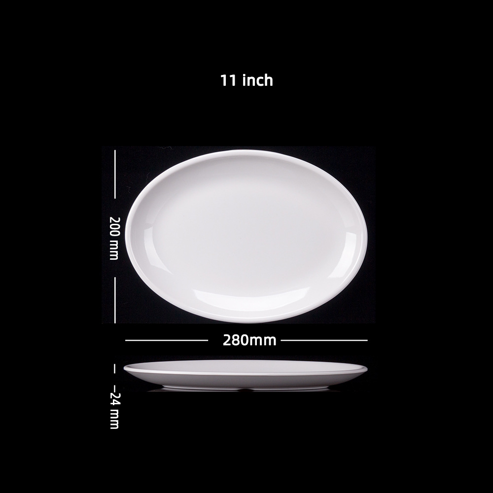 멜라민 얕은 타원형 접시 호텔 만두 과자 과일 플래터 학교 매점 접시 생선 접시 식기 도매스토어 가기