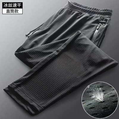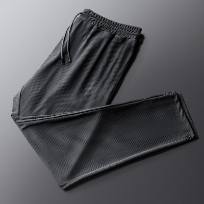 아이스 실크 바지 소년 여름 얇은 메쉬 발목 길이 바지 스포츠 캐주얼 바지 스트레이트 느슨한 플러스 사이즈 에어컨 트렌디 바지