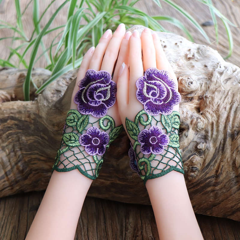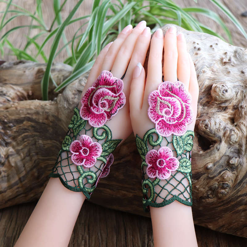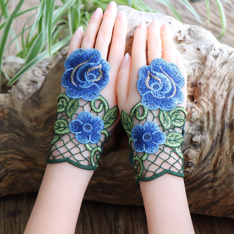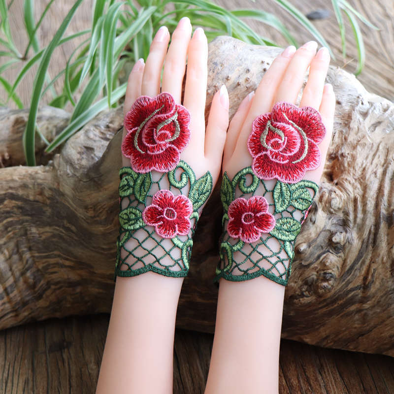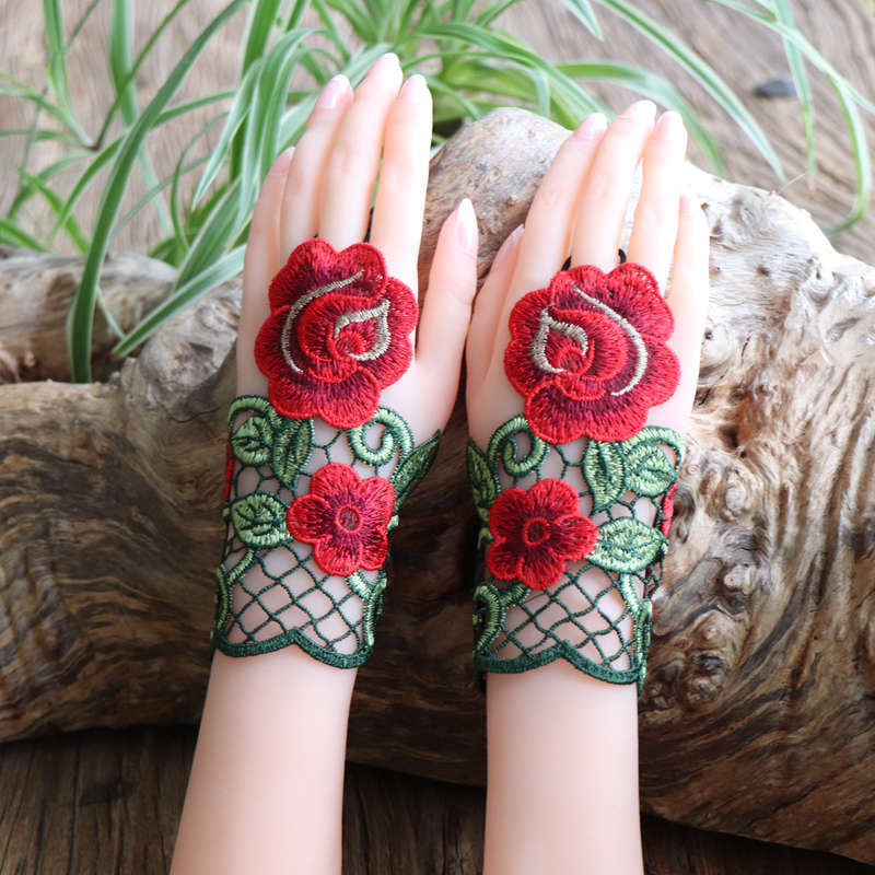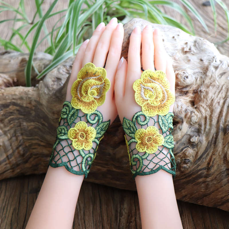 윈난 민족 자수 꽃 장갑 손목 여성 반 손가락 레이스 자수 봄과 여름 손 보석 팔찌 도매스토어 가기