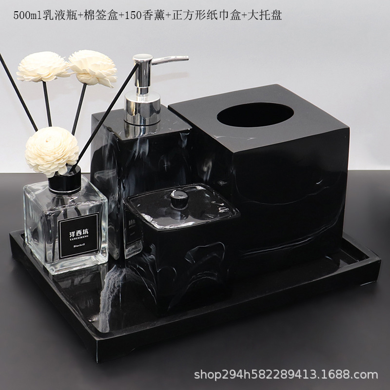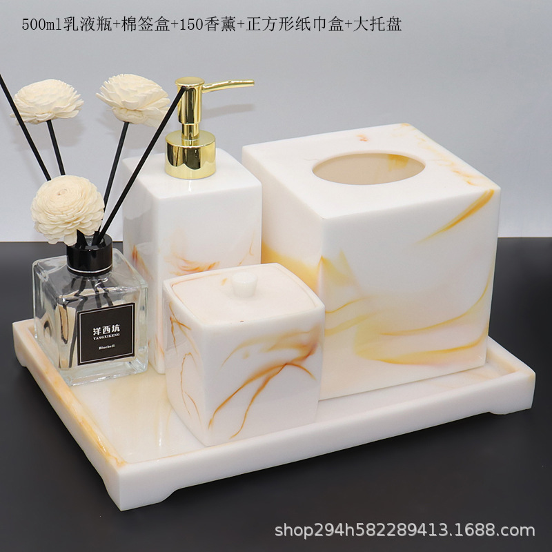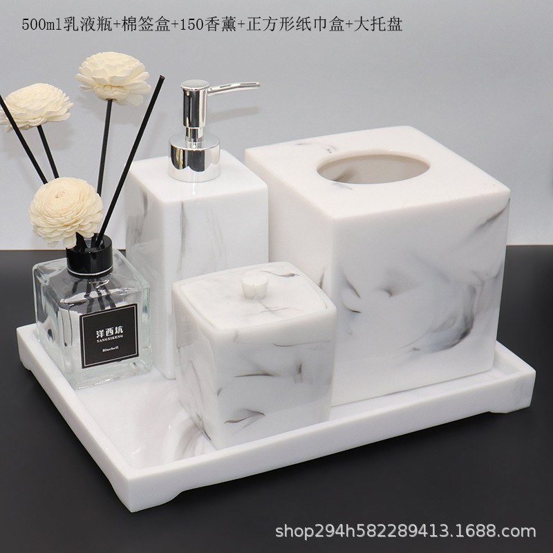 북유럽 대리석 패턴 트레이 유럽 스타일 모델 룸 수지 장식품 욕실 세척 트레이 티슈 박스 커버 장식