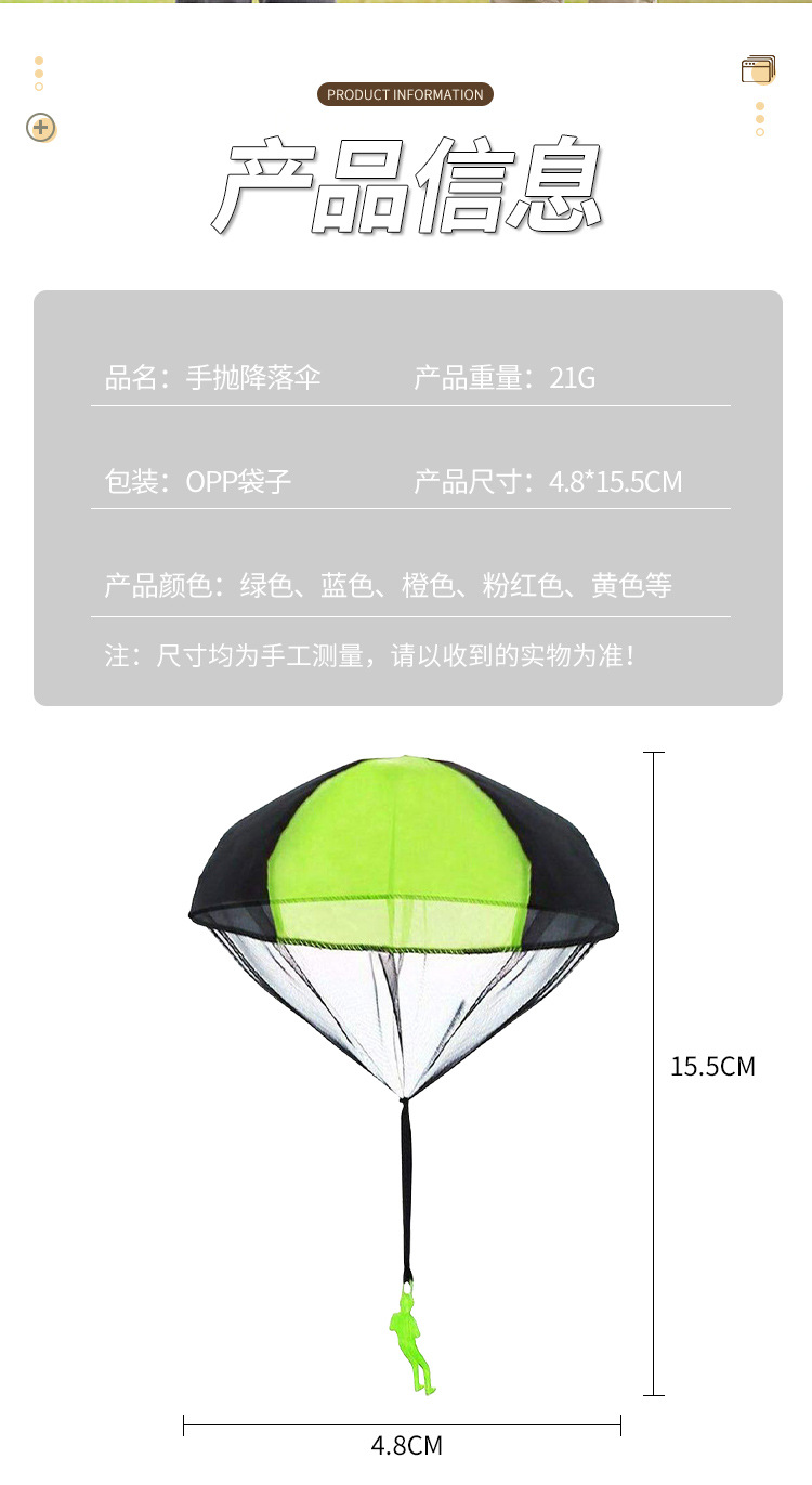 재고 어린이 손 낙하산 장난감 군인 낙하산 광장 야외 스포츠 유치원 활동 슬롯