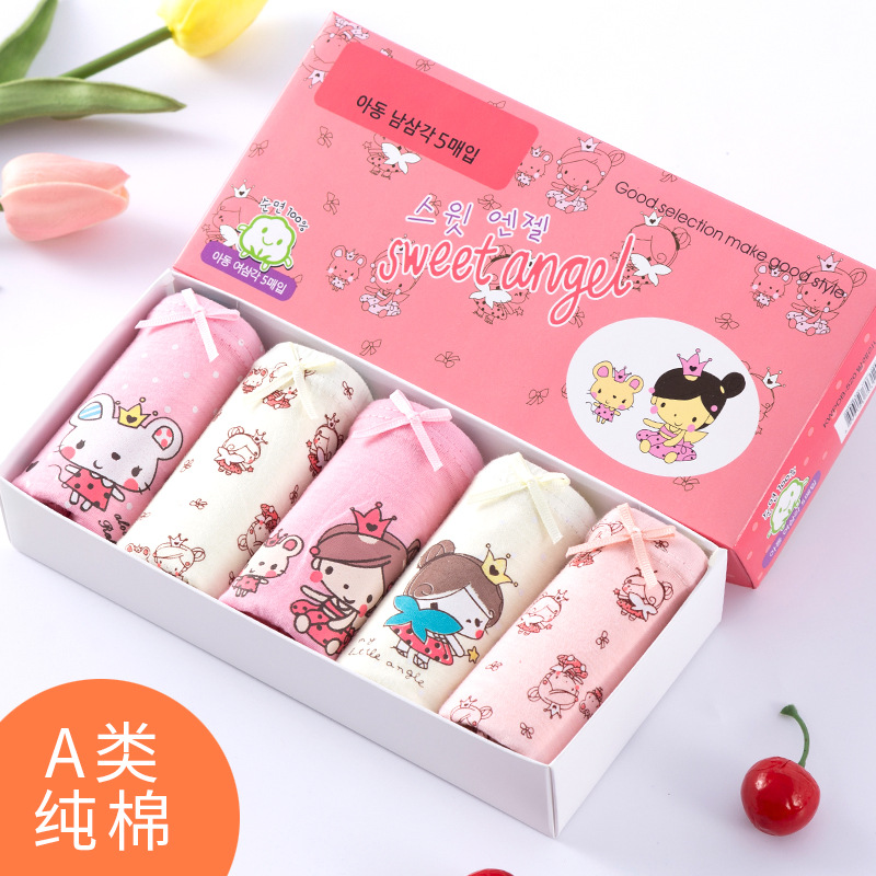 5 팩 소녀 면 인쇄 어린이 속옷 어린이 만화 면 팬티 한국 아기 반바지스토어 가기