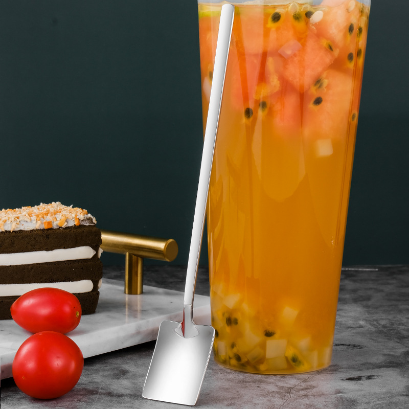 크리 에이 티브 삽 모양 긴 손잡이 믹싱 스푼 스테인레스 스틸 커피 스퀘어 스푼 조미료 스푼 긴 얼음 스푼 디저트 꿀 스푼