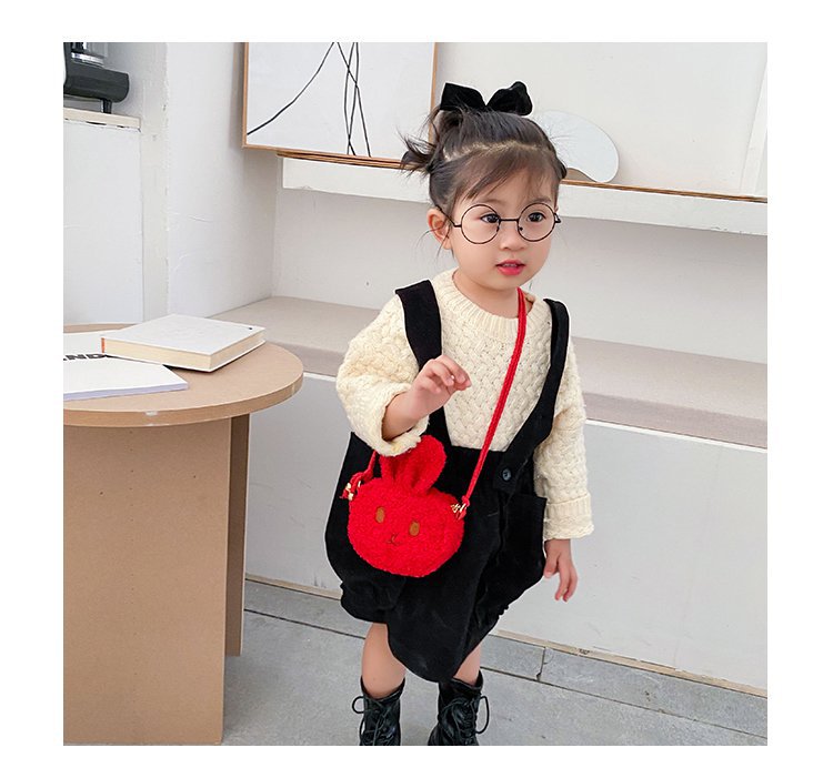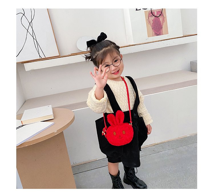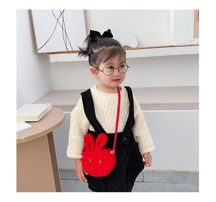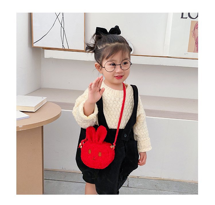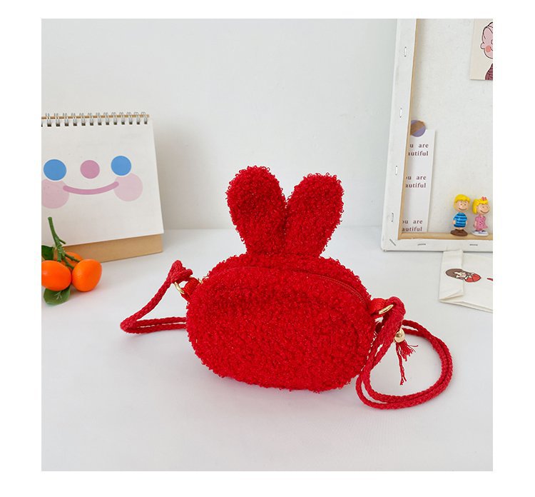 2022 새로운 봉제 토끼 어린이 크로스 바디 백 한국 스타일 귀여운 여아 숄더백 어린이 동전 지갑