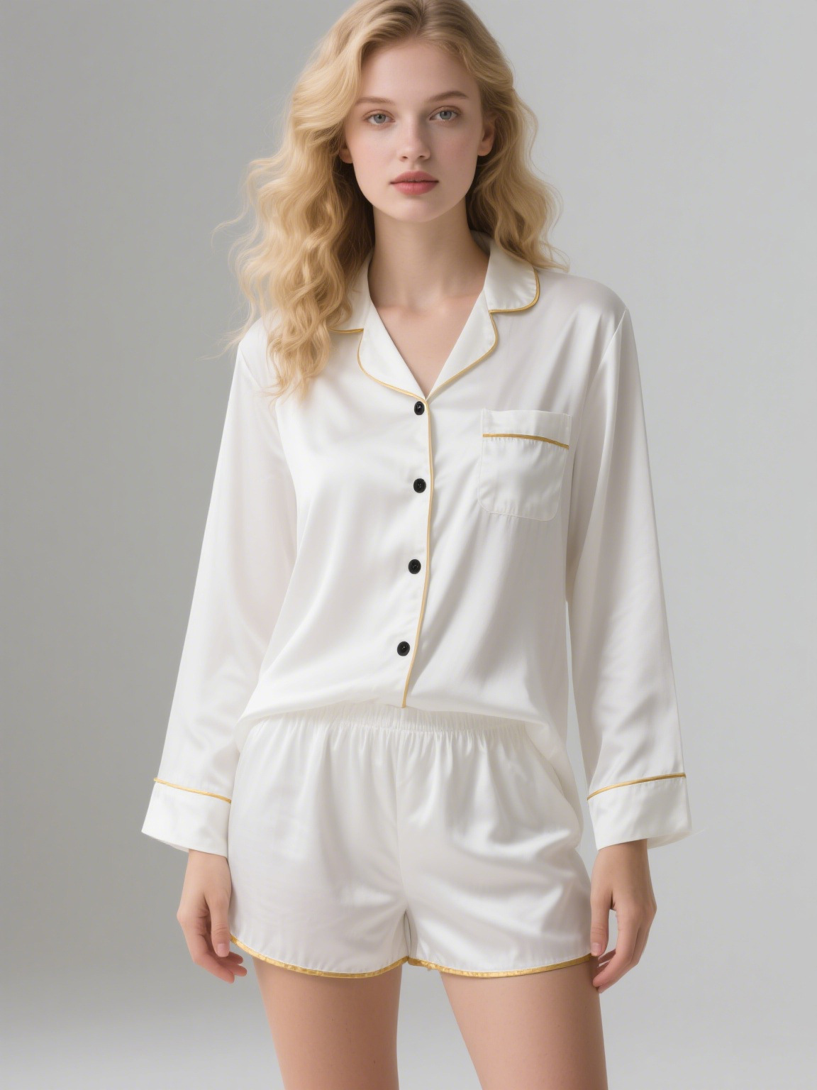 • 긴팔반바지9027#화이트(골드 엣지)