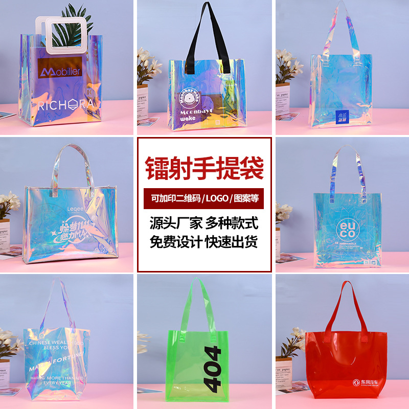 스폿 PVC 레이저 토트 백 인쇄 로고 가방 핸드백 다채로운 TPU 레이저 쇼핑 토트 백