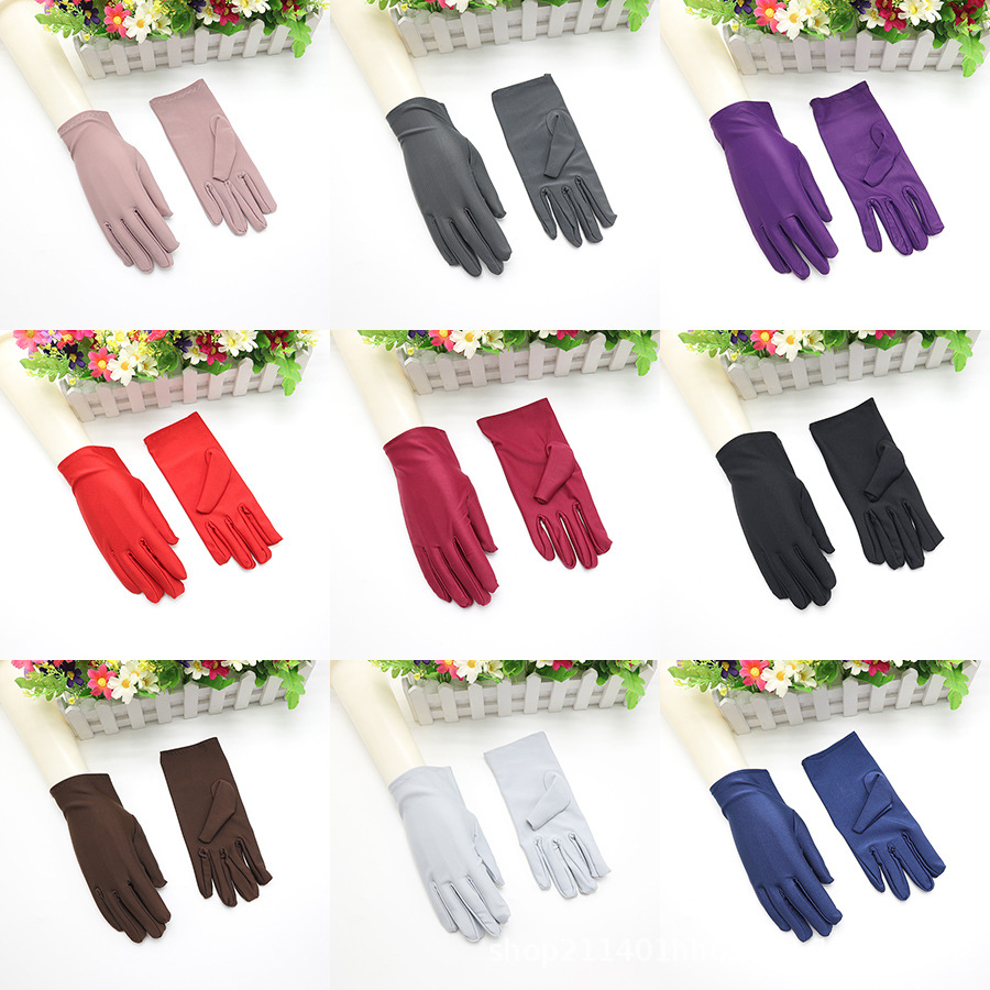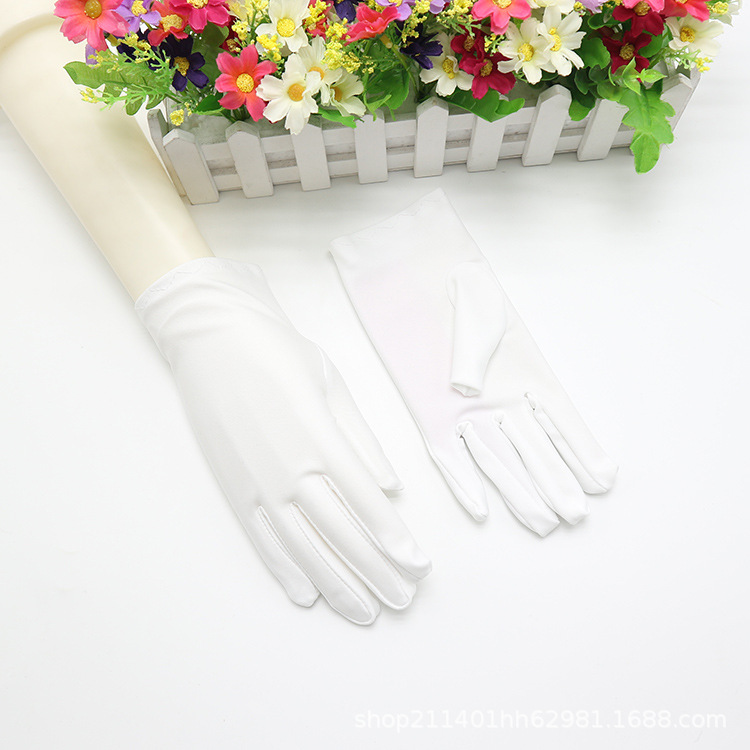 봄과 여름 여성 장갑 흰색 에티켓 얇은 짧은 스트레치 댄스 타이트한 흰색 남성 보석 장갑 스판덱스 도매스토어 가기