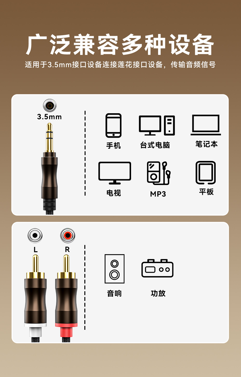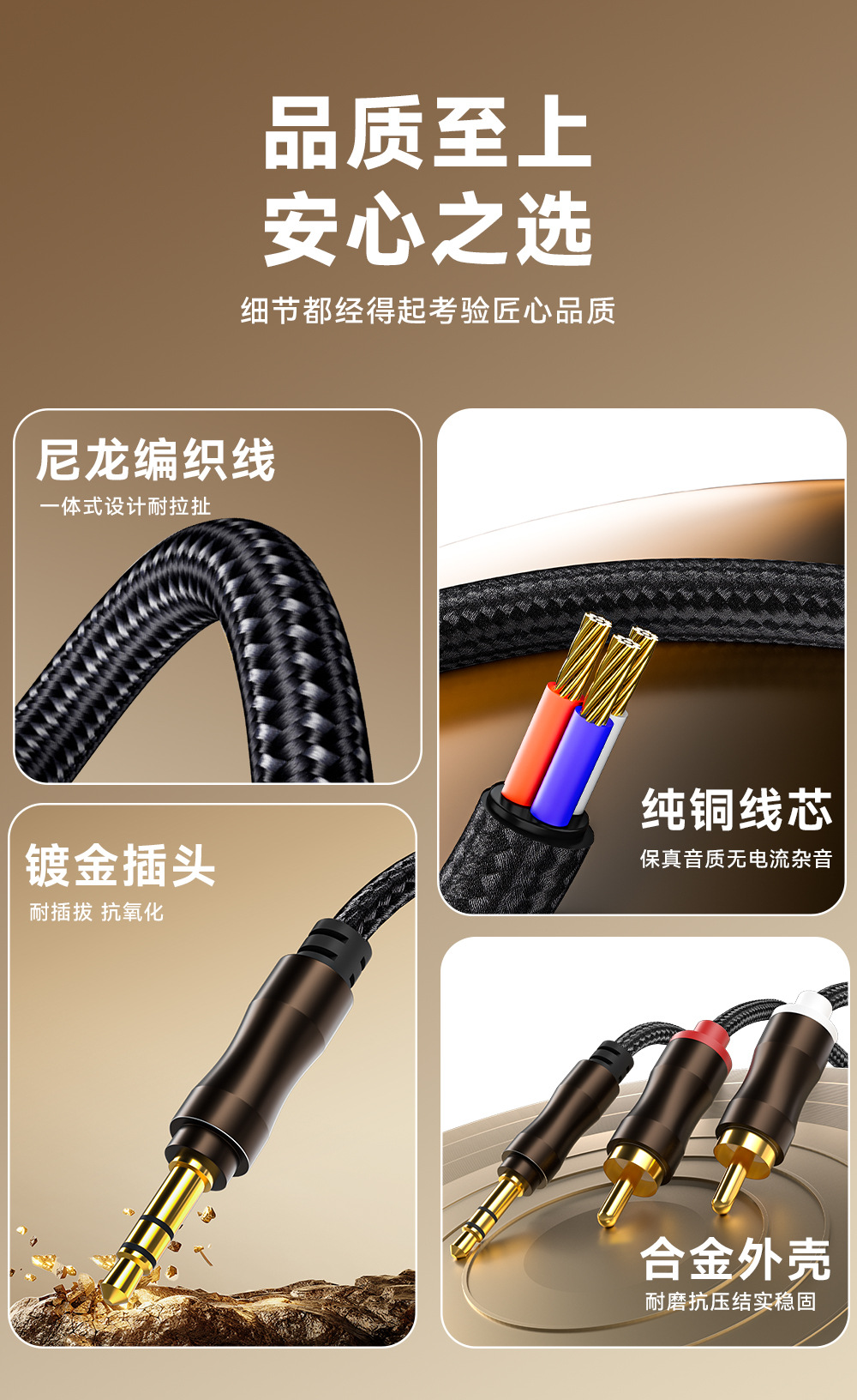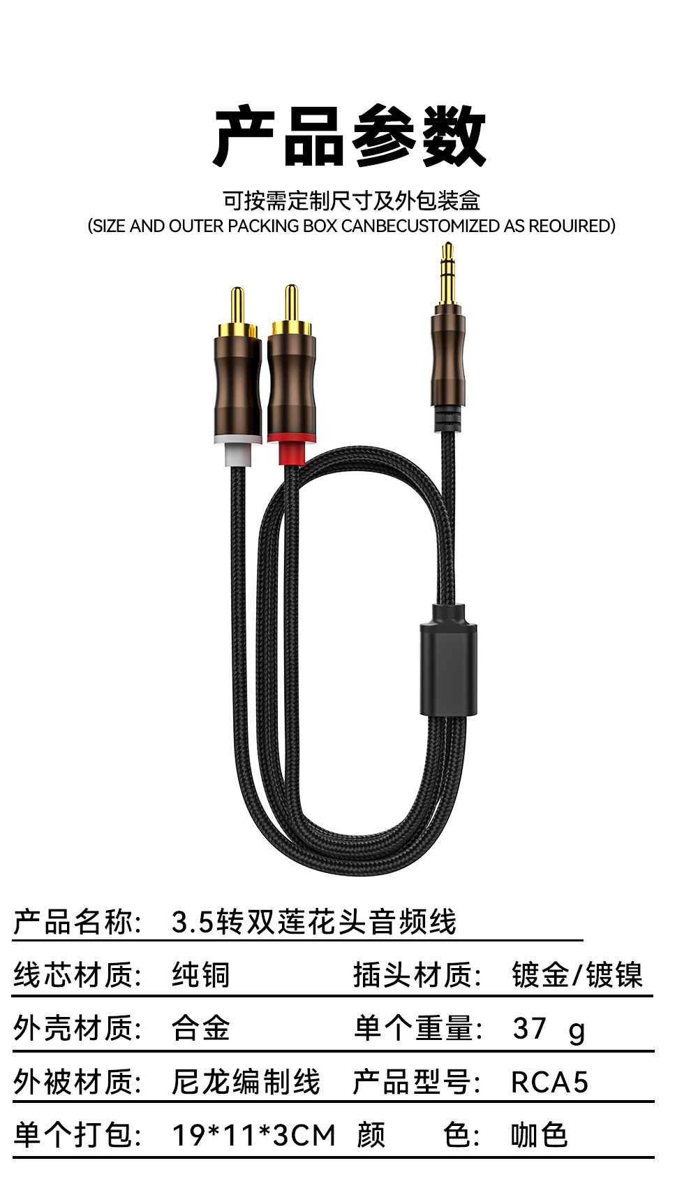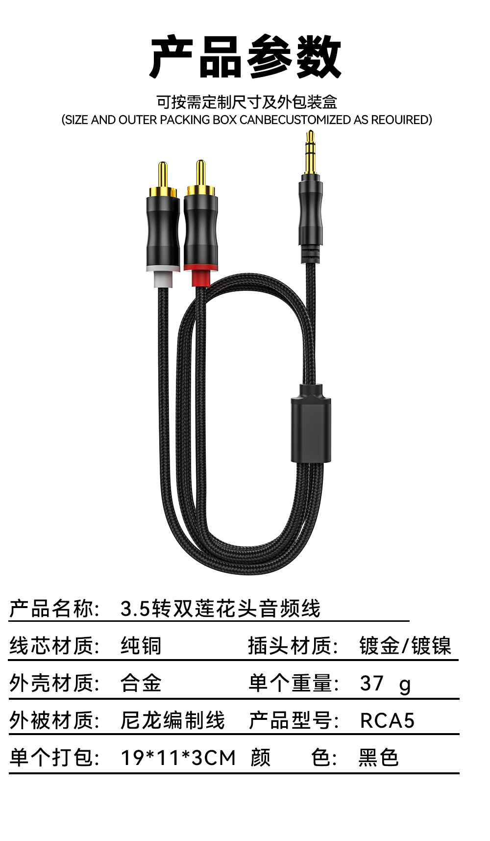 제조업체 3.5mm - 더블 로터스 헤드 오디오 케이블 RCA 1-2 오디오 케이블 3.5 - 2RCA 오디오 케이블스토어 가기