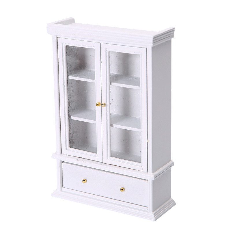1:12 인형 집 액세서리 인형 집 미니어처 간단한 현대 거실 수납 캐비닛 화이트 더블 도어 유리 캐비닛