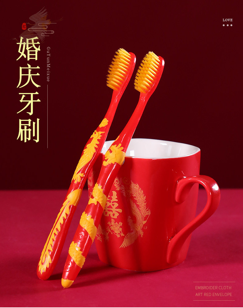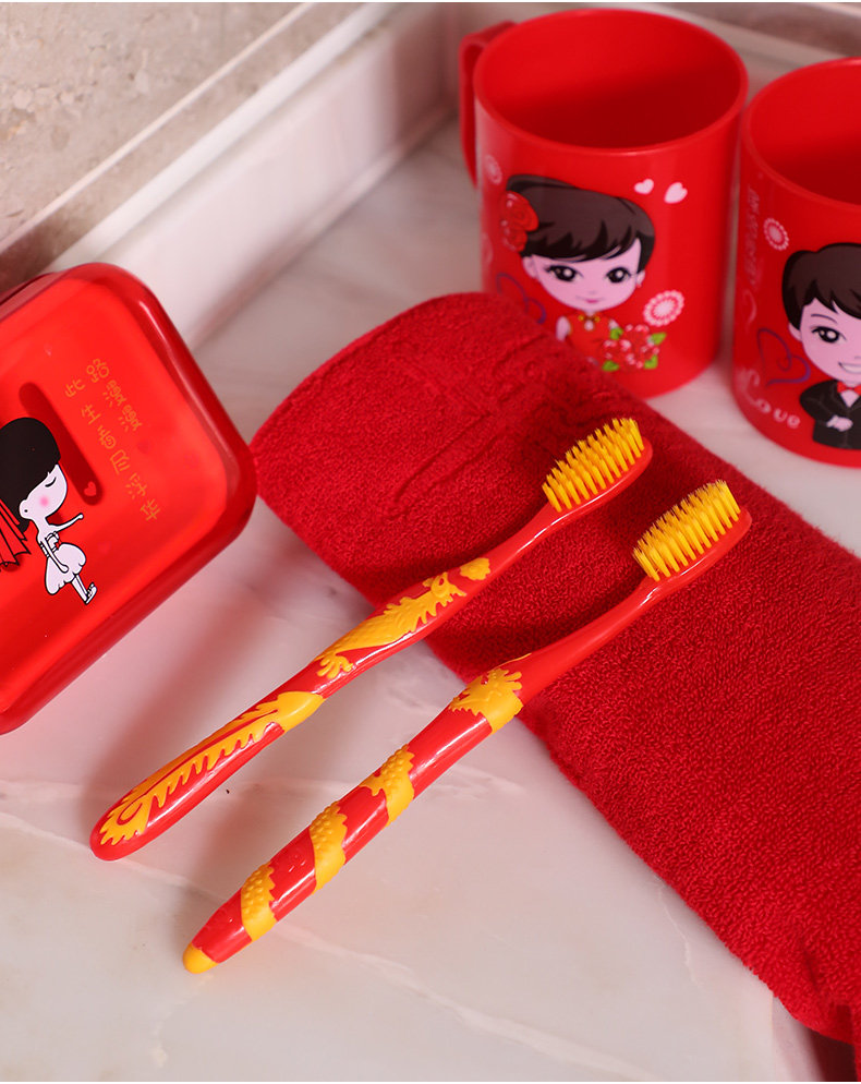 웨딩 용품 레드 축제 칫솔 부드러운 헤어 페어 웨딩 세면 용품 성인 커플 홈 도매