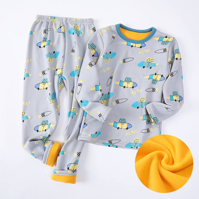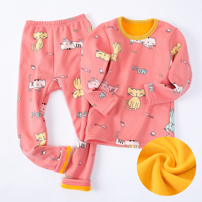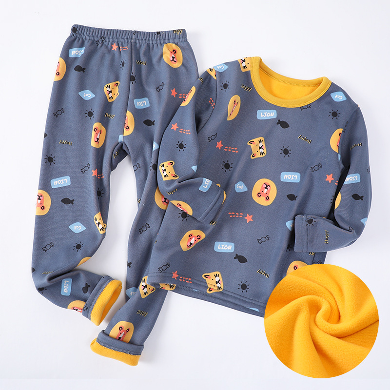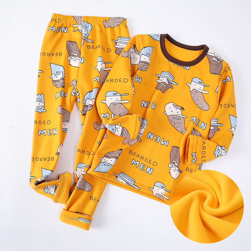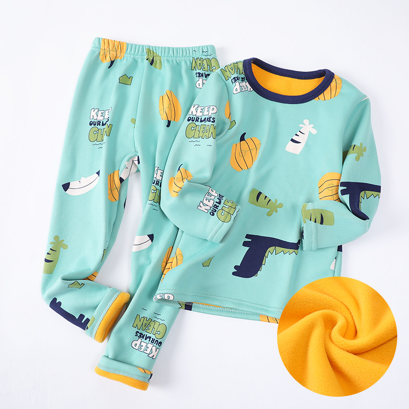 가을과 겨울베이스 세트 어린이 열 속옷 기모 두껍게 세트 어린이 인쇄 골드 벨벳 세트