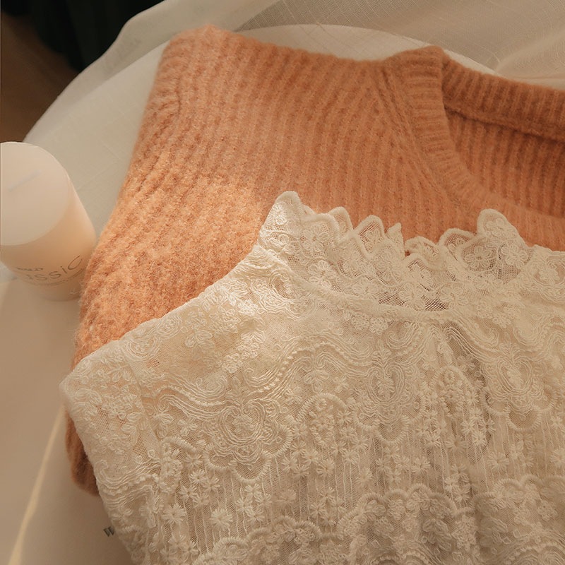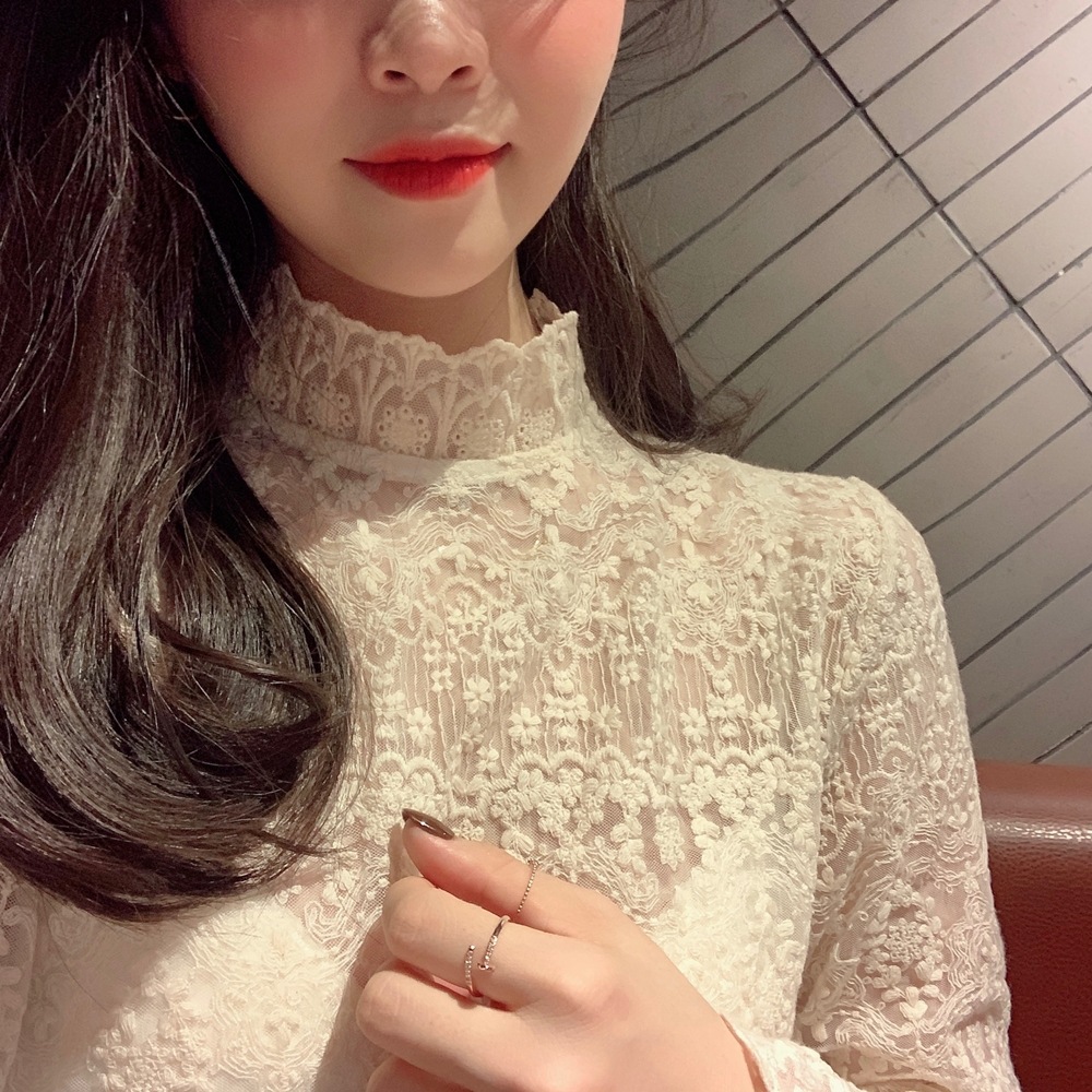 봄 새로운 스타일 웨스턴 스타일 셔츠 여자의 하프 하이 넥 자수 레이스 셔츠 슈퍼 요정 메쉬 기모 베이스