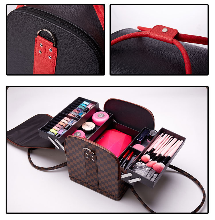 심플한 컬러 매칭 휴대용 한국식 화장품 가방 수납 가방 다층 대형 메이크업 아티스트 및 메이크업 매니큐어 가방 패턴 자수 가방스토어 가기