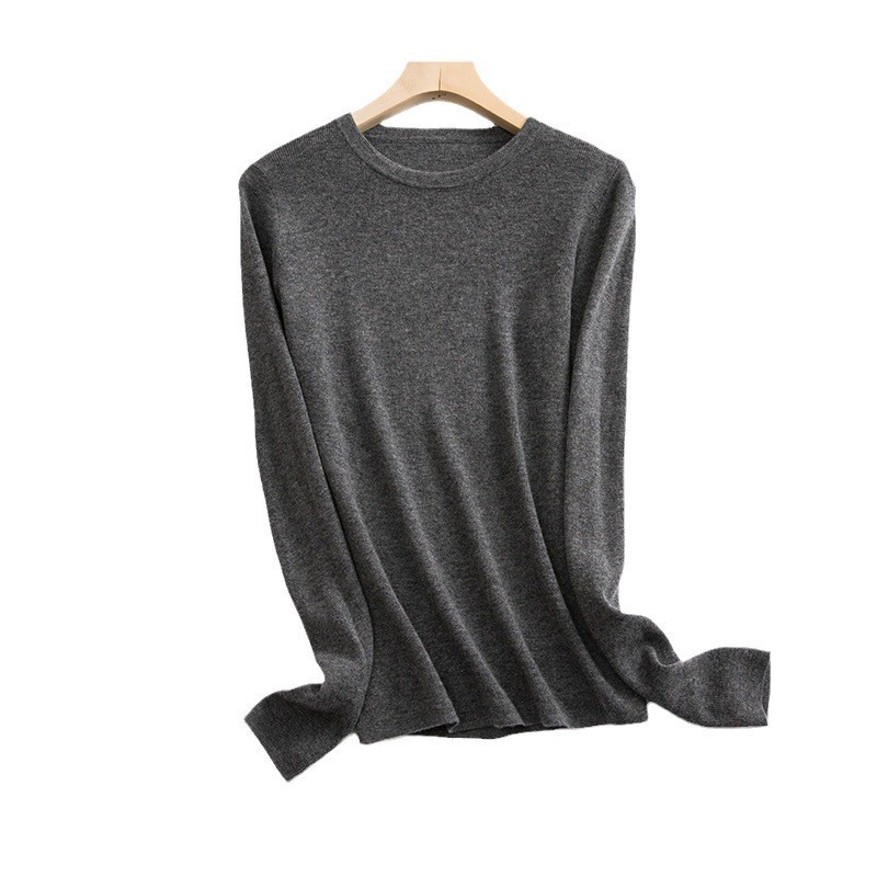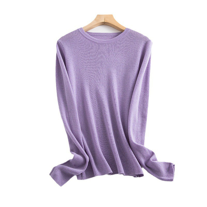 2025 초가을 신상품 순모 스웨터 이너웨어 풀오버 기본형 단색 라운드넥 니트 여성용 로우넥 스웨터
