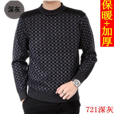 가을과 겨울을위한 중년 남성용 풀오버 스웨터 두꺼운 격자 무늬 느슨한 캐주얼 실크 스웨터 아빠의 니트 베이스 셔츠스토어 가기