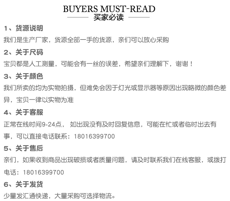 本公司所有产品图片及细节图都为实拍,但因光线问题或电脑显示器的不同,可能存在一些色差,纯属正常现象,望各位朋友了解,谢谢合作!