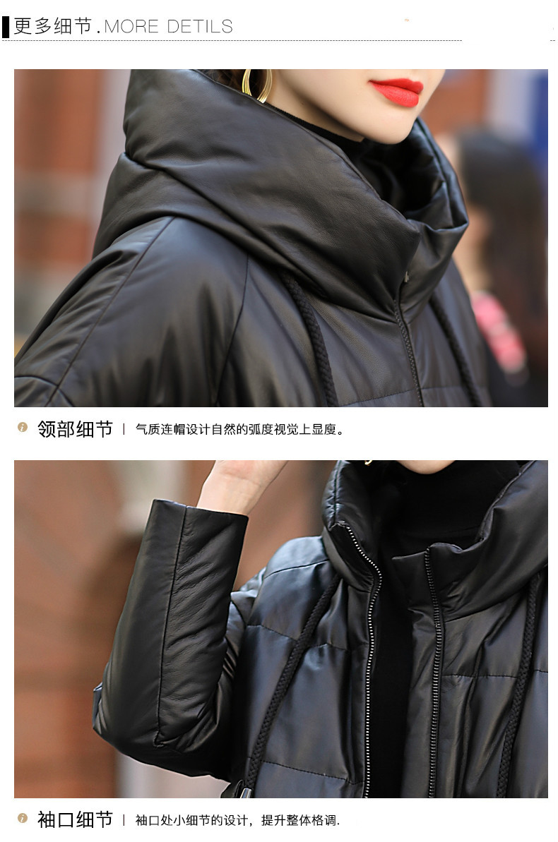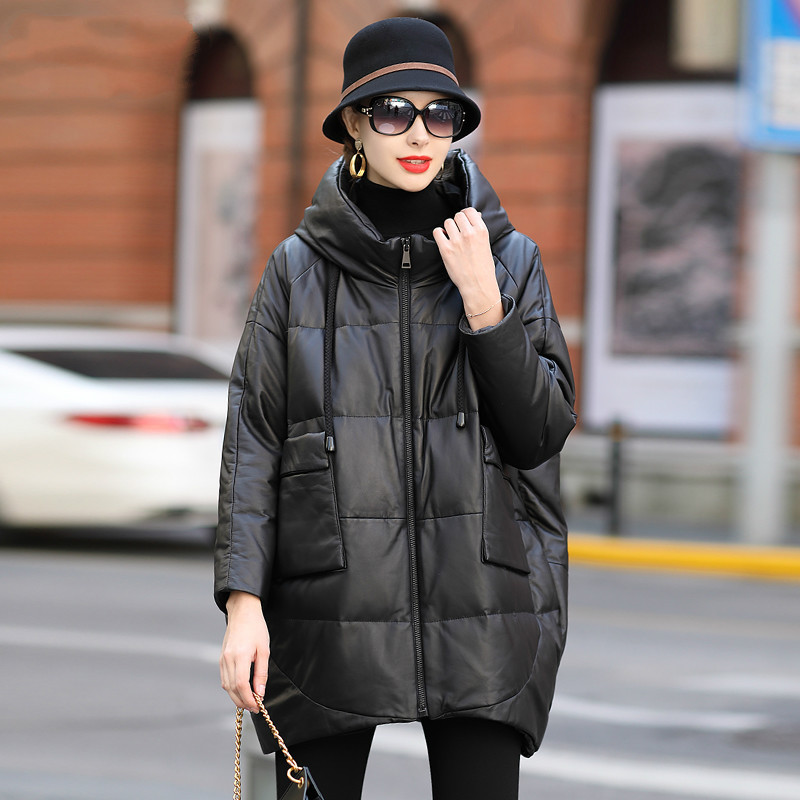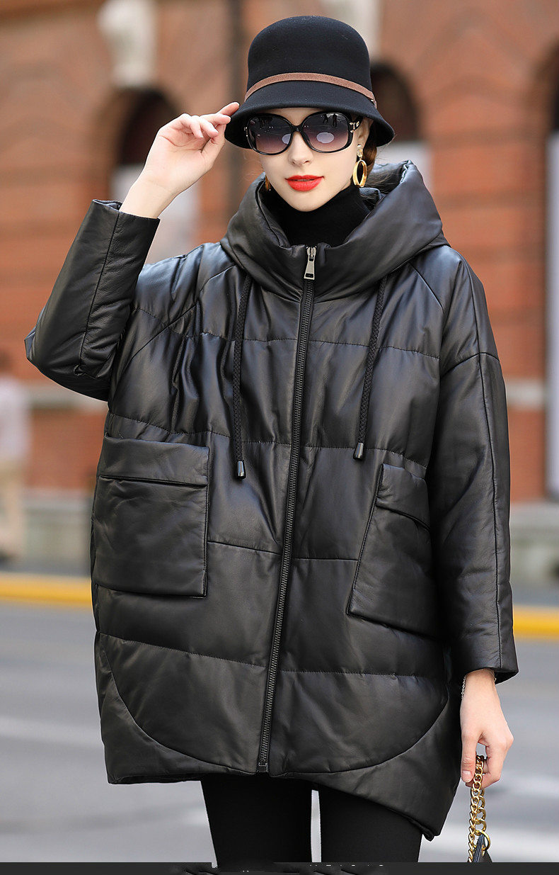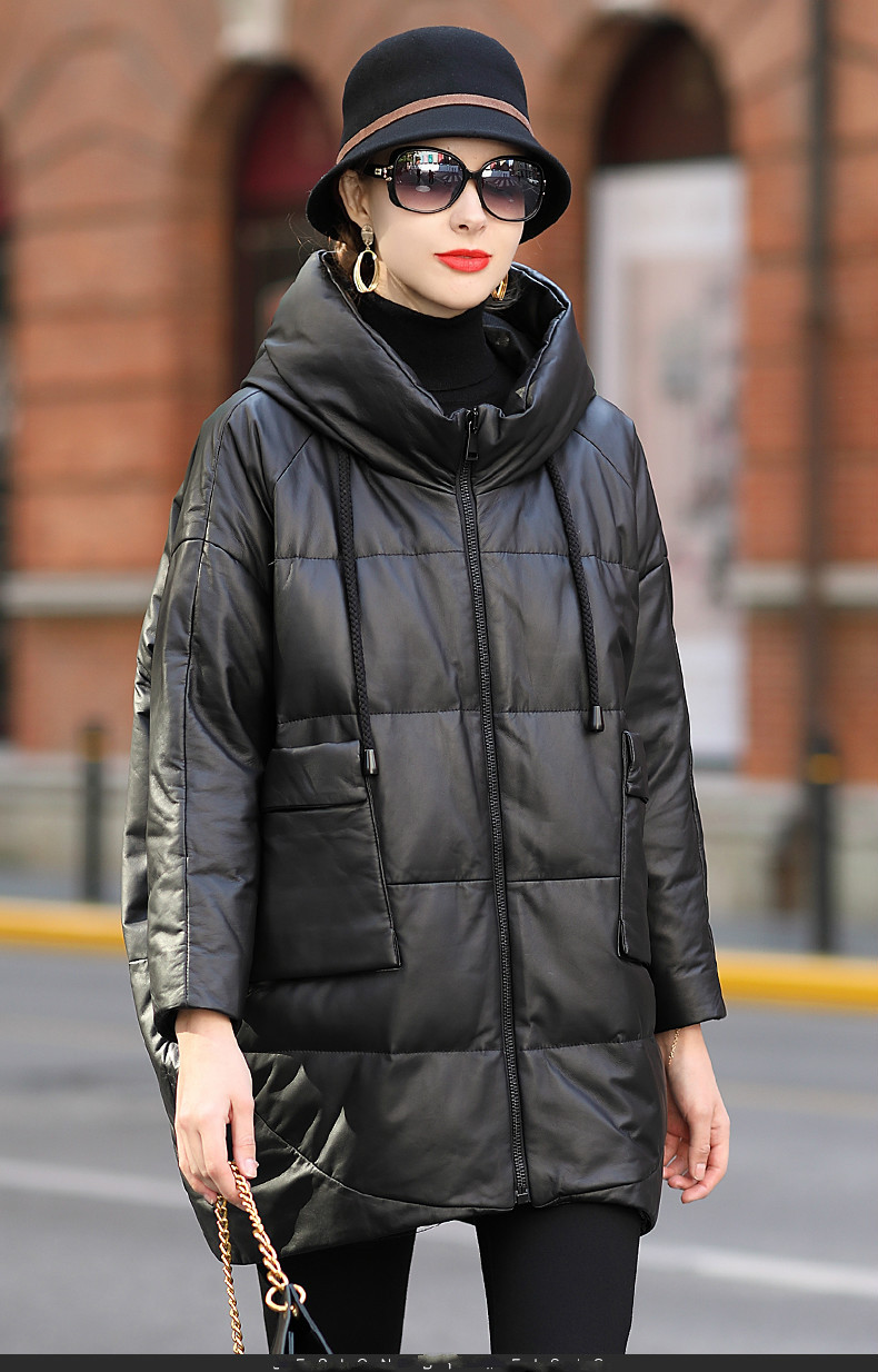 2024년 하이닝 겨울 신상품 여성용 중간 길이 캐주얼 루즈핏 후드 양가죽 다운 재킷