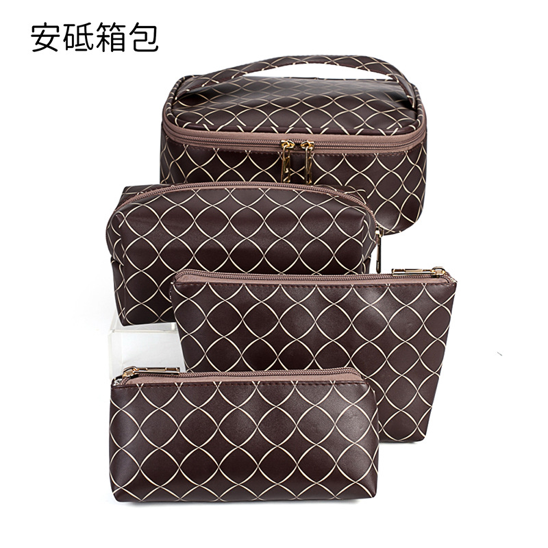 크로스 보더 새로운 재고 화장품 가방 3 피스 PU 방수 세면도구 가방 대용량 휴대용 여행 보관 가방 로그