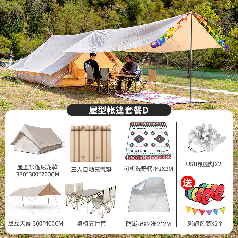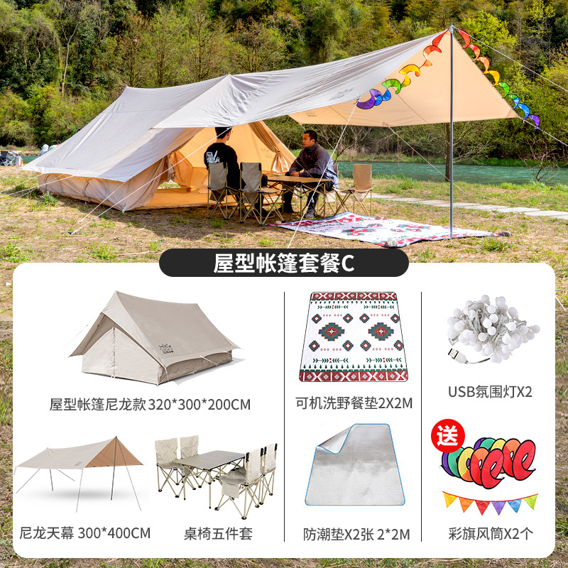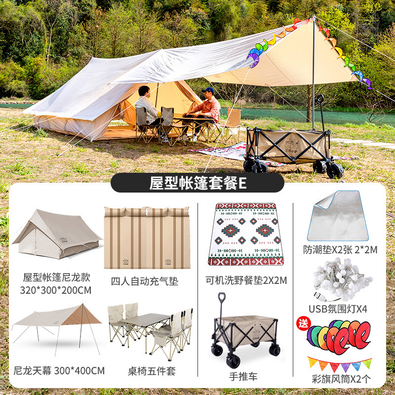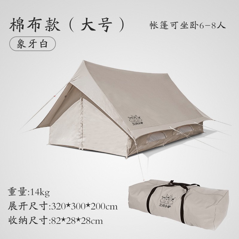 3 개의 작은 당나귀 복고풍 집 모양의 야외 비 폭풍 방지 캠핑 럭셔리 두꺼운 면 대형 캠핑 캐빈 텐트스토어 가기