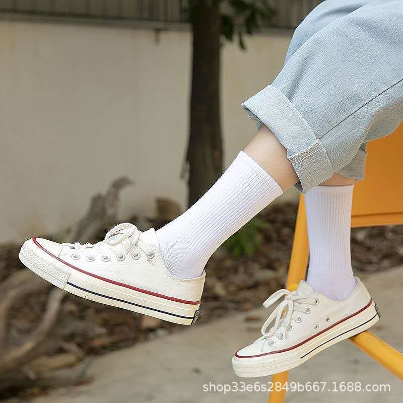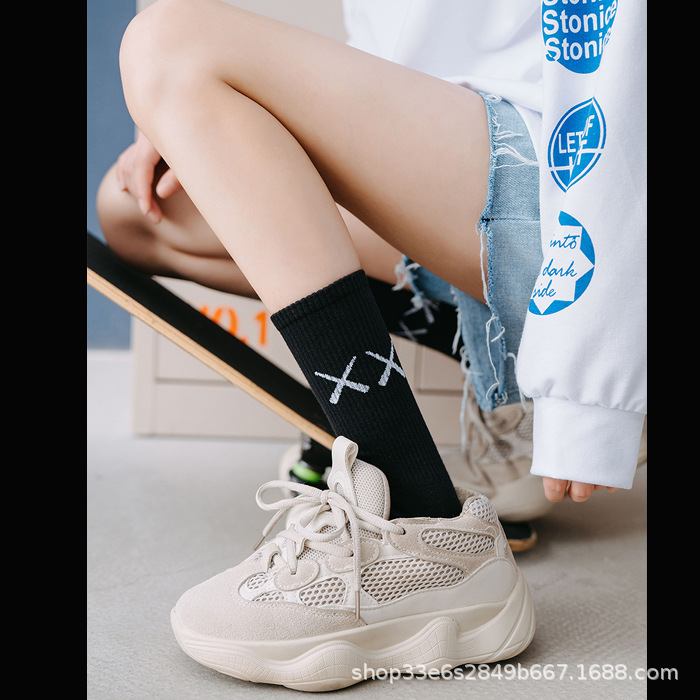 포크 블랙 양말 여자의 중간 길이 양말 유행 한국 백인 남자의 스포츠 스타킹 일본식 더미 스트리트 스타일스토어 가기