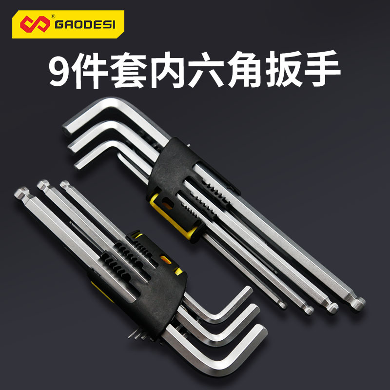 Gauders 9 피스 미터법 내부 육각 렌치 육각 렌치 세트 여분의 긴 내부 육각 렌치 도구스토어 가기