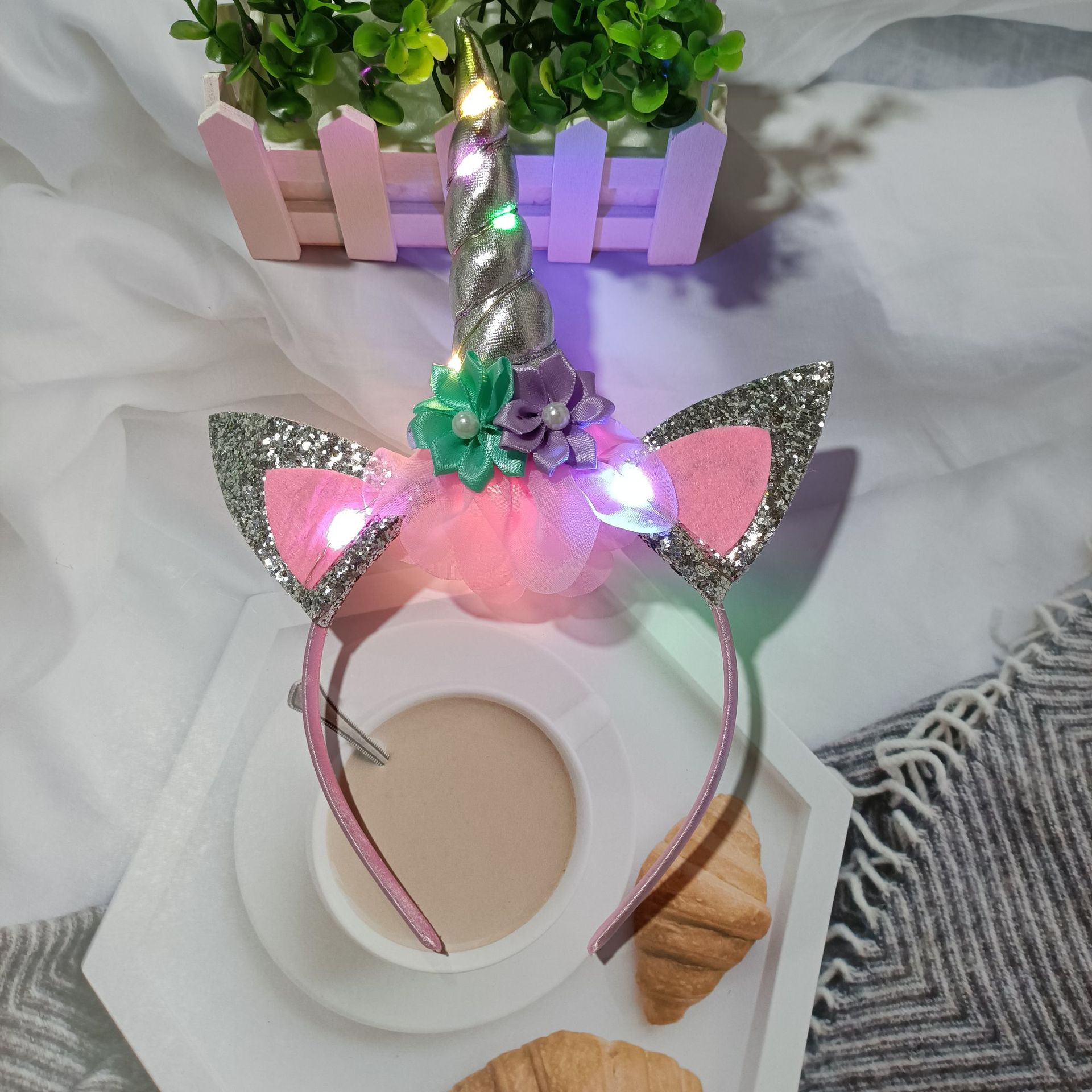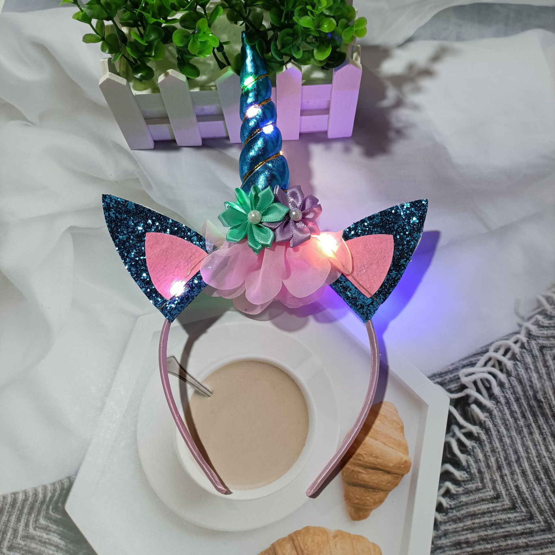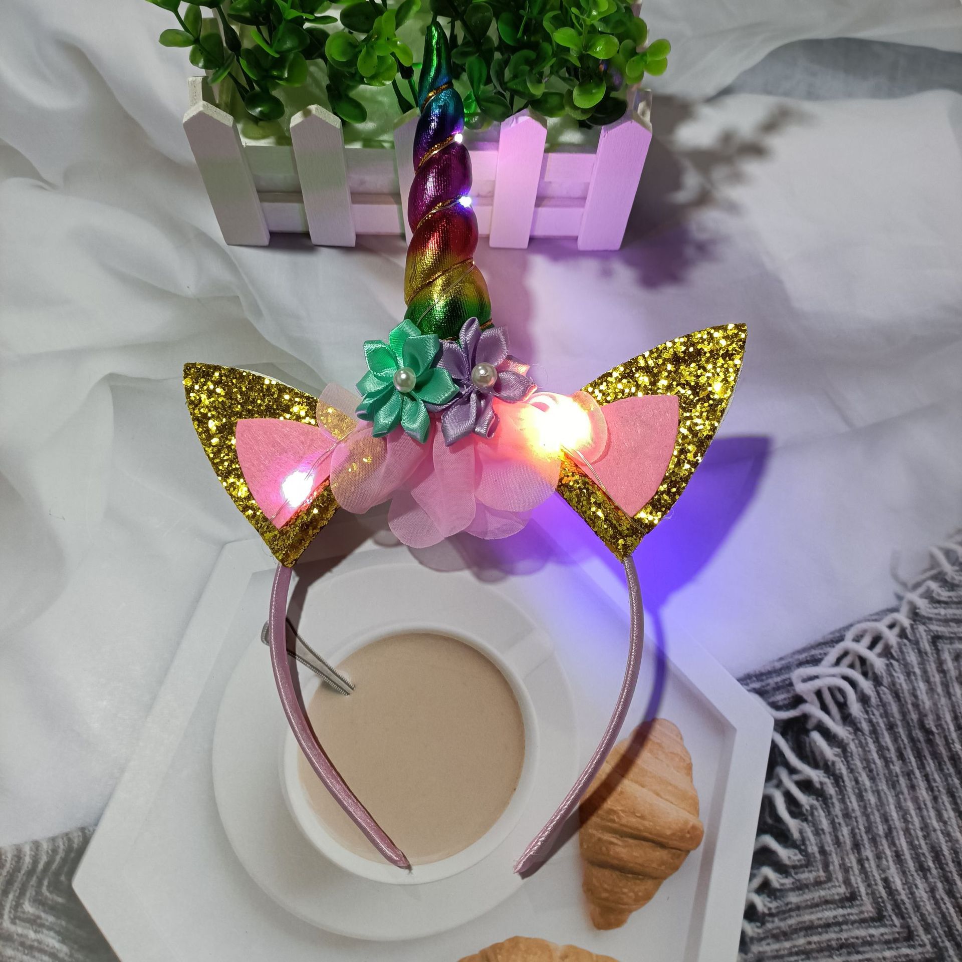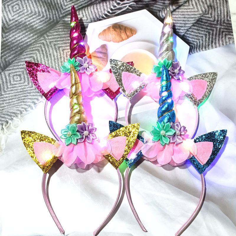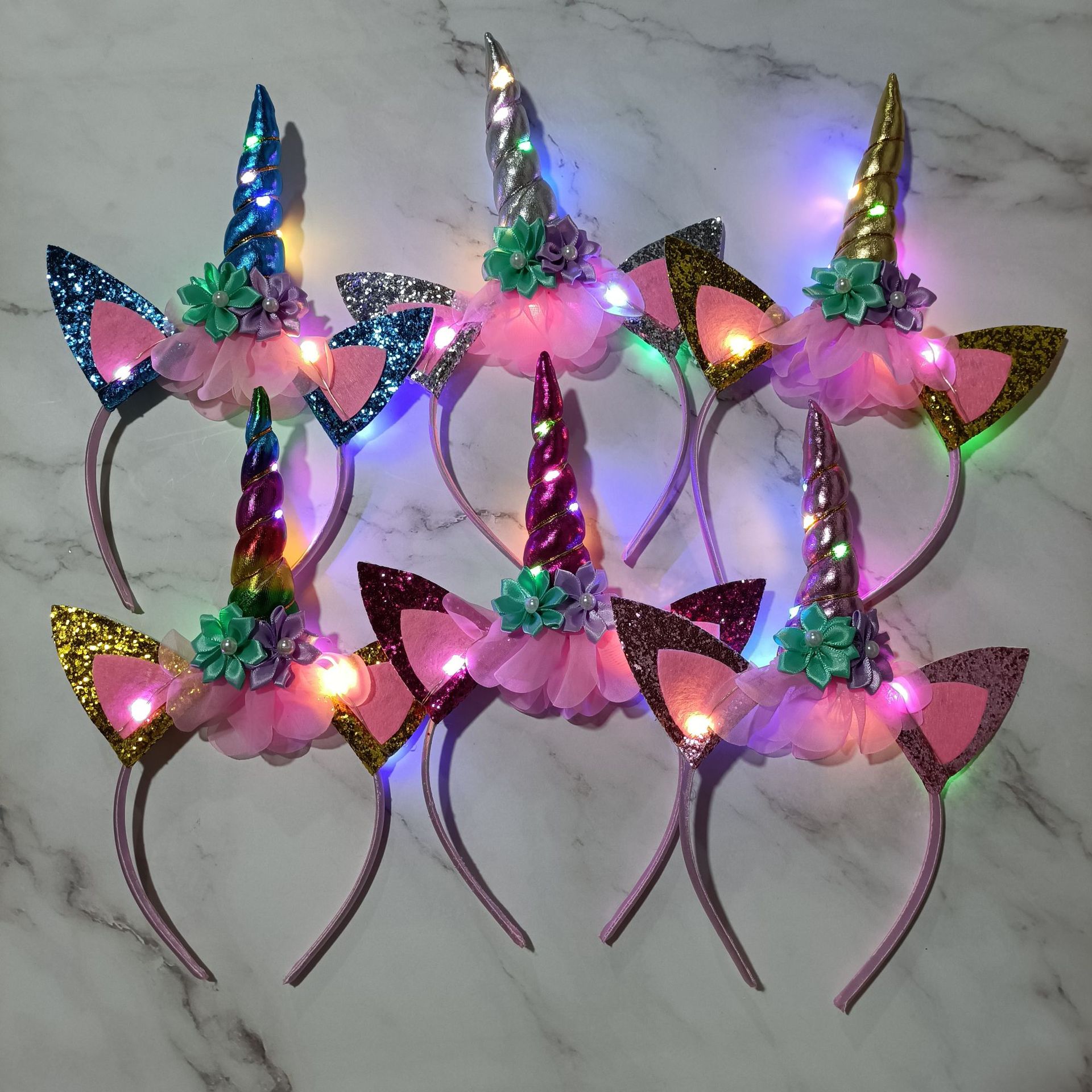 새로운 재고 플러스 조명 유니콘 머리띠 어린이 휴가 파티 빛나는 머리 버클 할로윈 조명 성능 머리띠