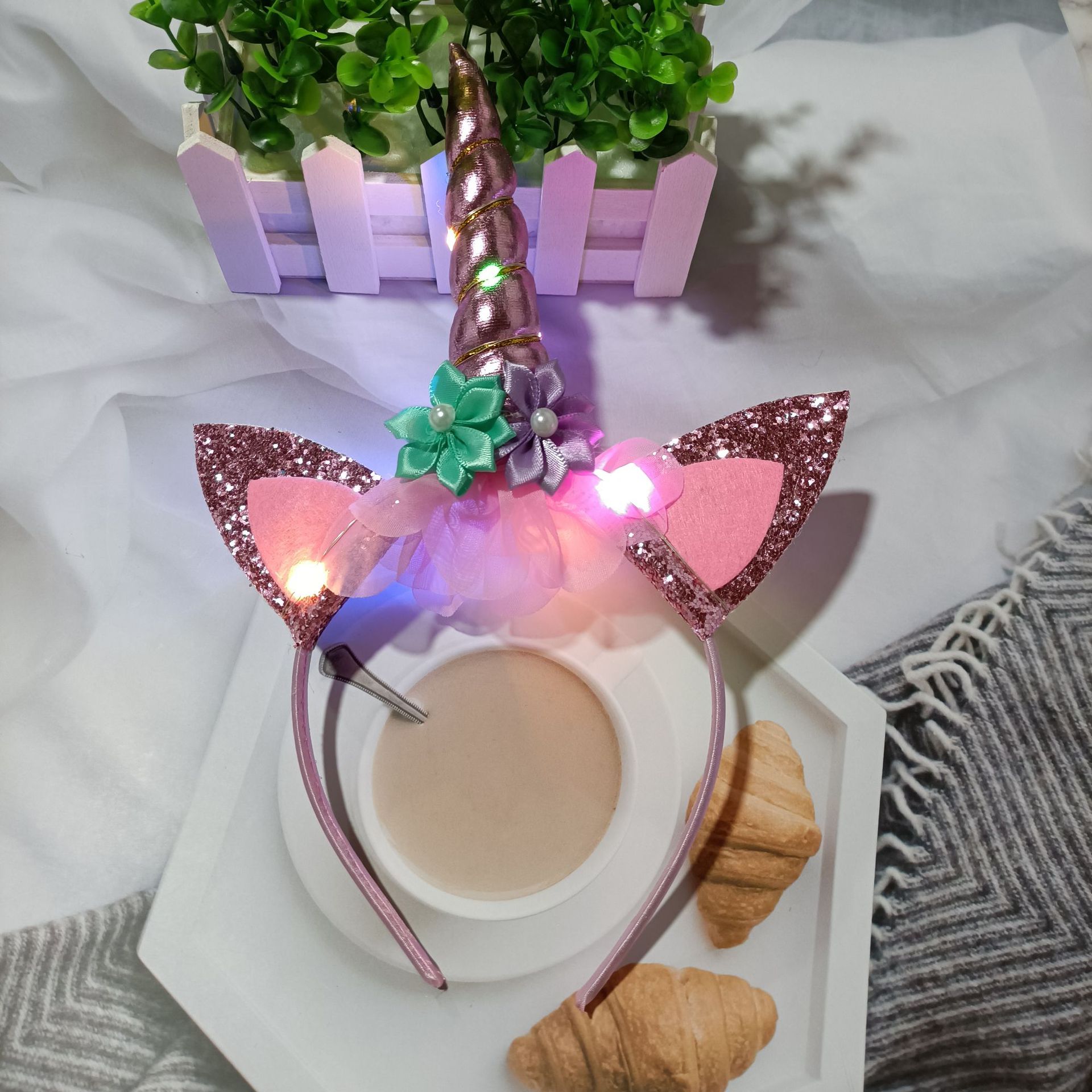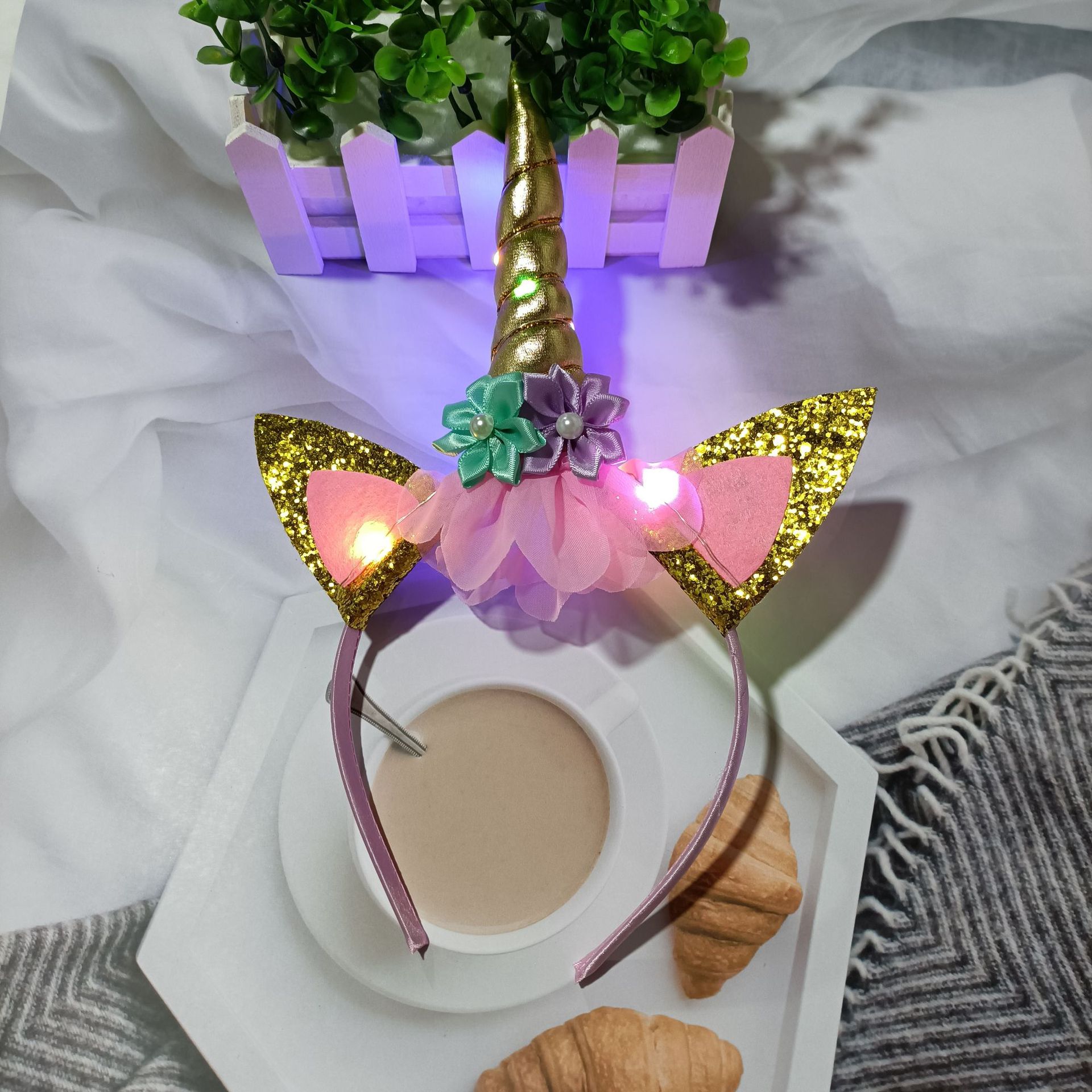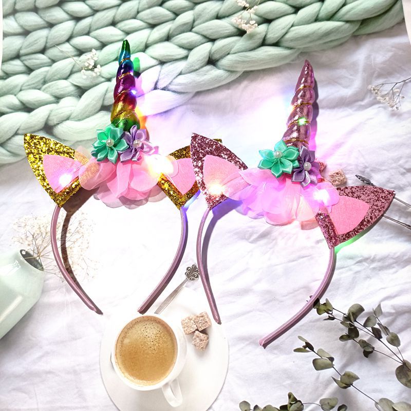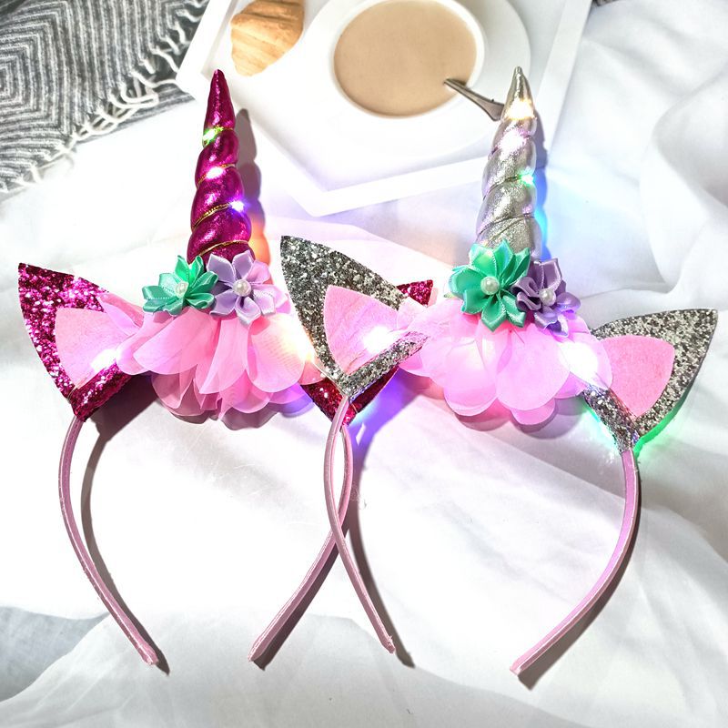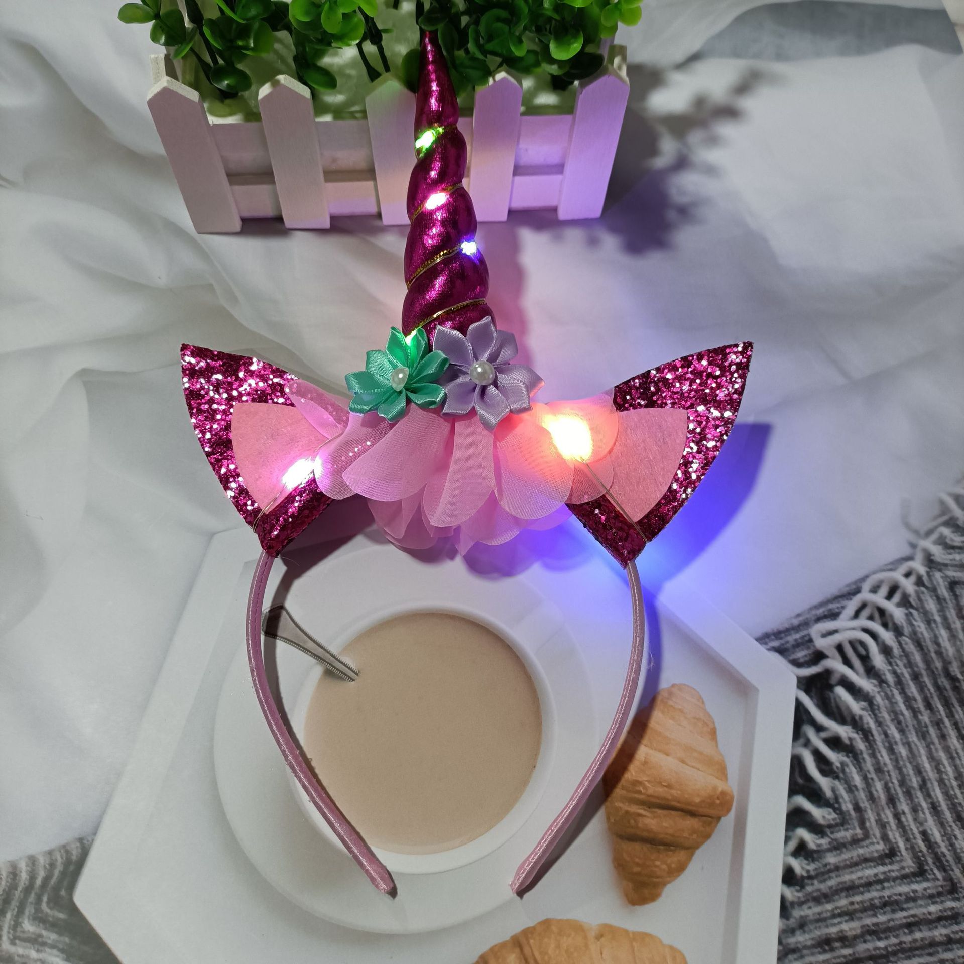 새로운 재고 플러스 조명 유니콘 머리띠 어린이 휴가 파티 빛나는 머리 버클 할로윈 조명 성능 머리띠