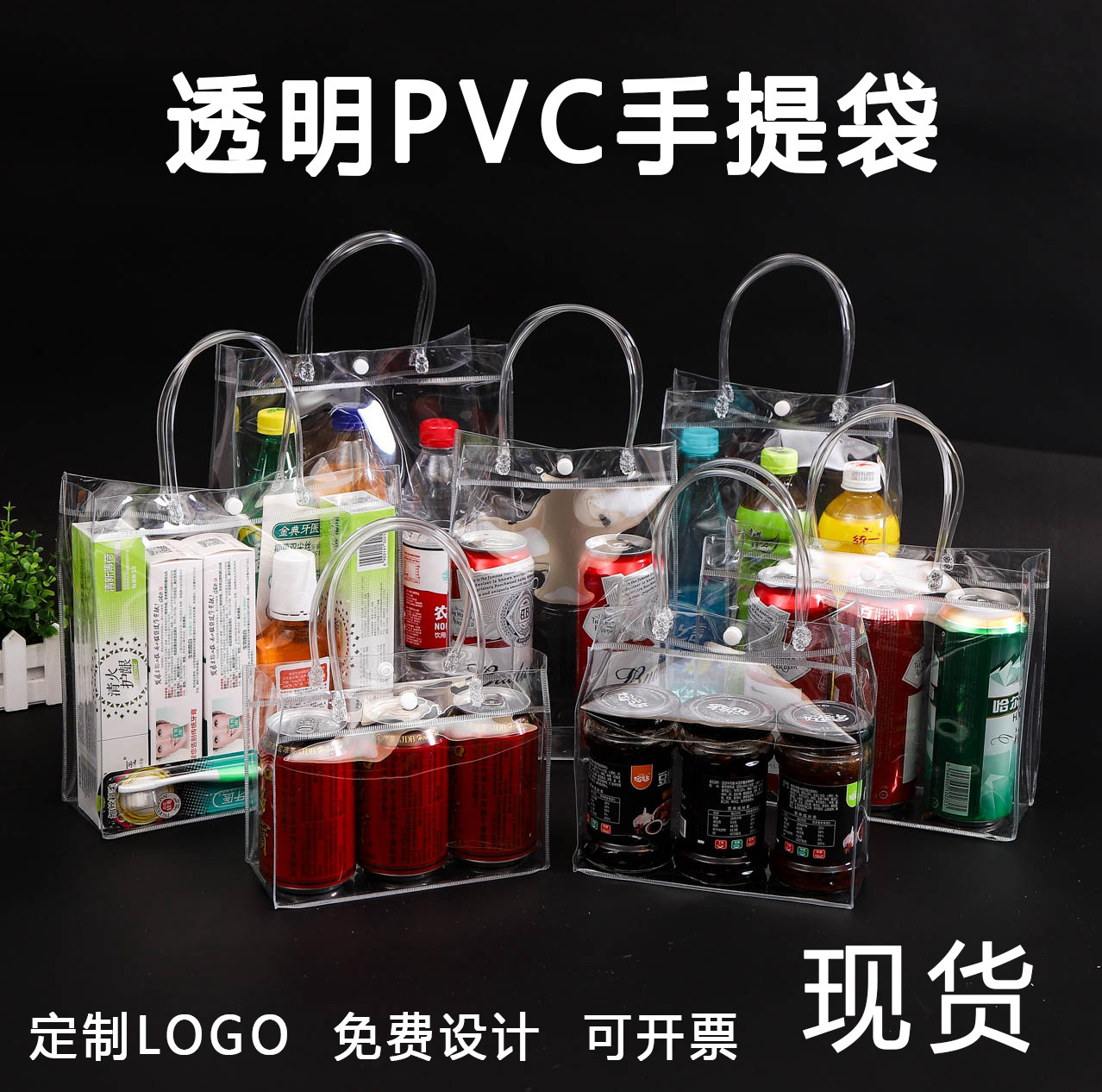공장 재고 도매 PVC 토트백 손 선물 가방 휴대용 3 종 세트 투명 PVC 가방 인쇄 로고스토어 가기