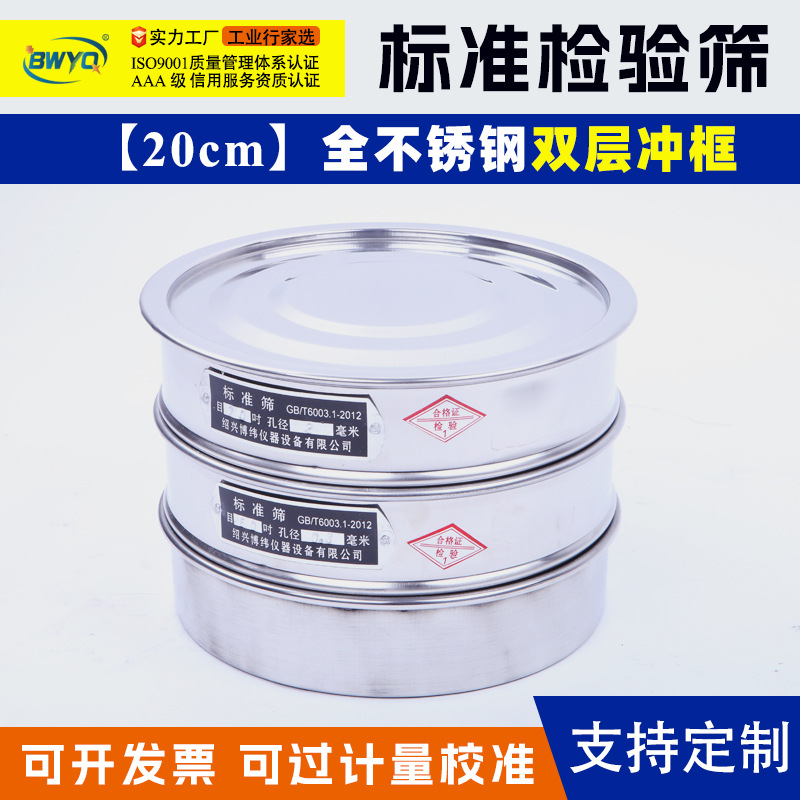 20cm标准检验筛子 实验室双层冲框试验筛药典筛全304不锈钢分样筛超值价:¥45