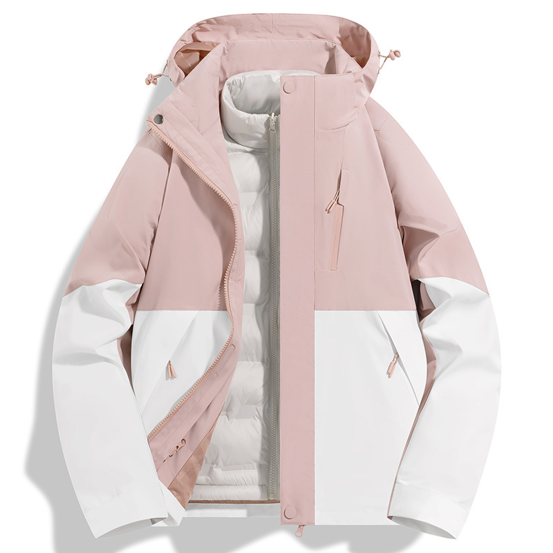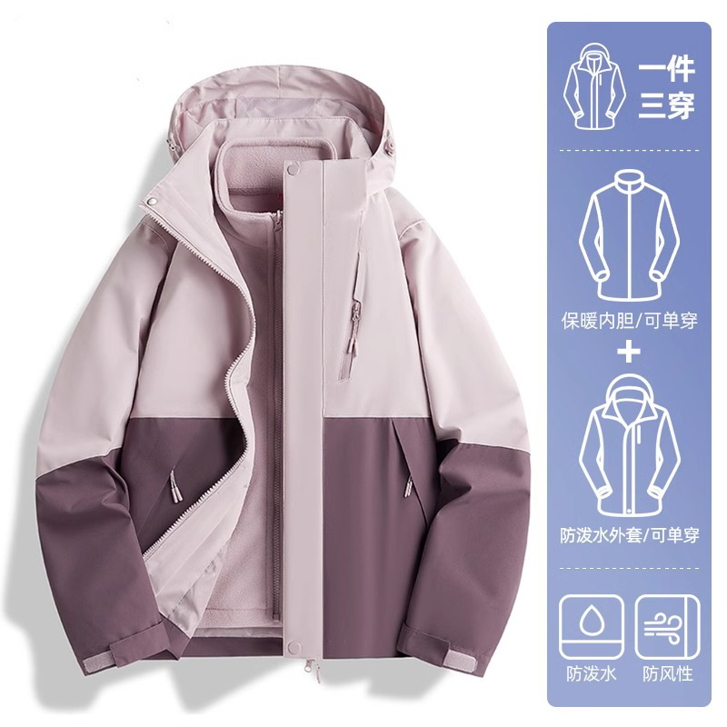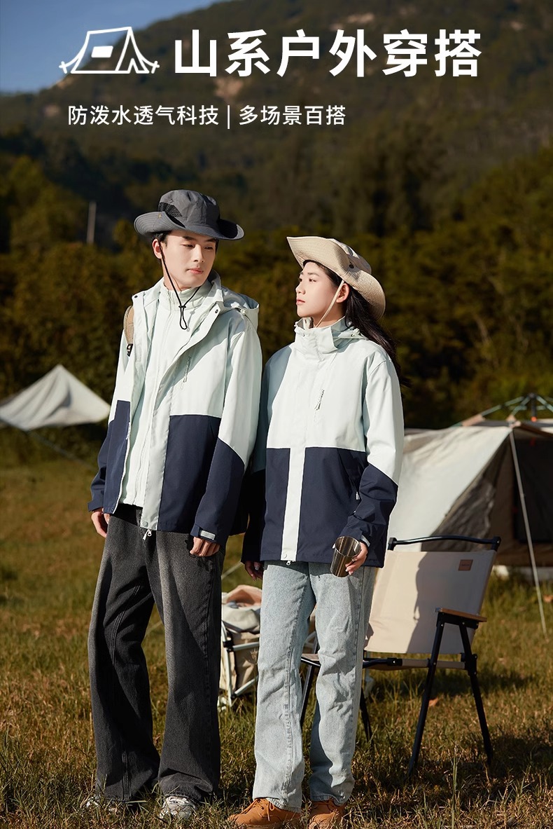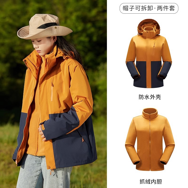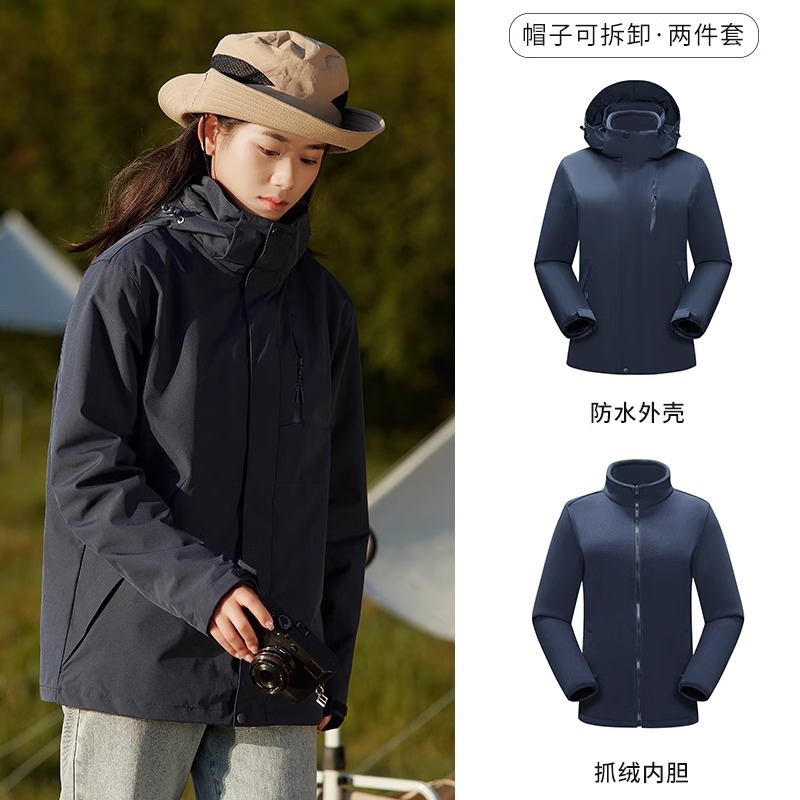 Luo Tuo의 여성용 동일한 재킷 2025 새로운 3-in-1 분리형 방풍 및 방수 등산 재킷 남성용 가을, 겨울 재킷