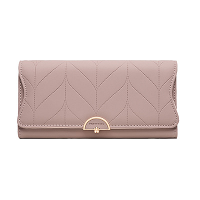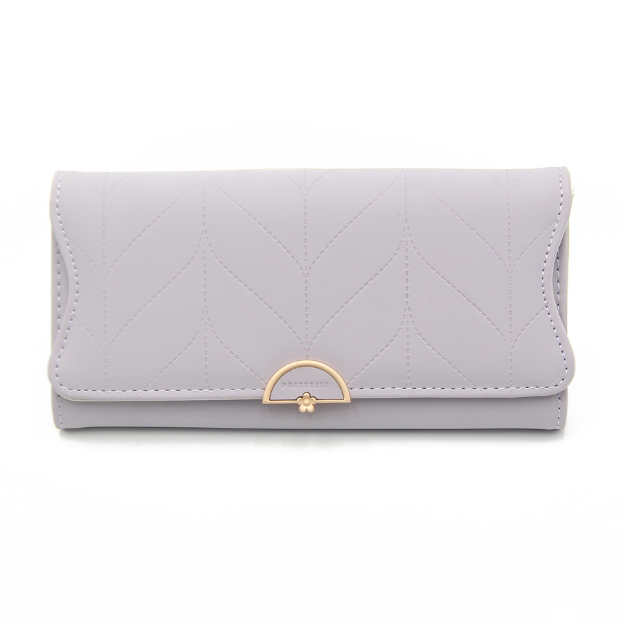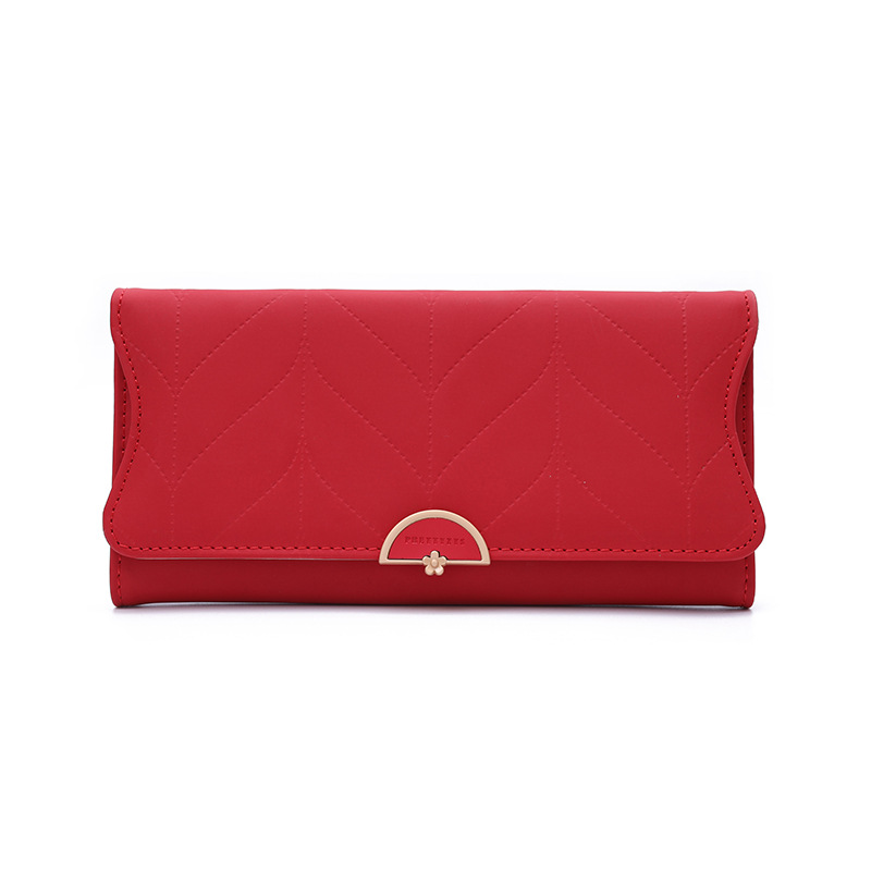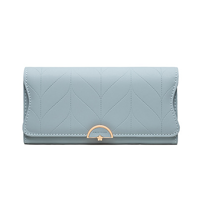 跨境外贸钱包女长款日韩PU皮小清新叶子搭扣简约百搭女手拿包卡包