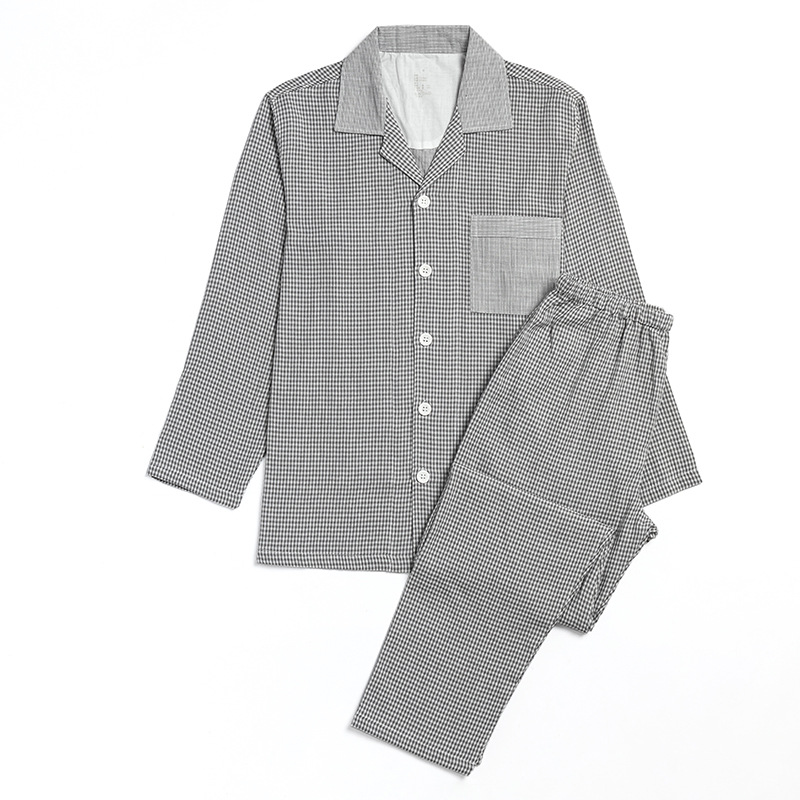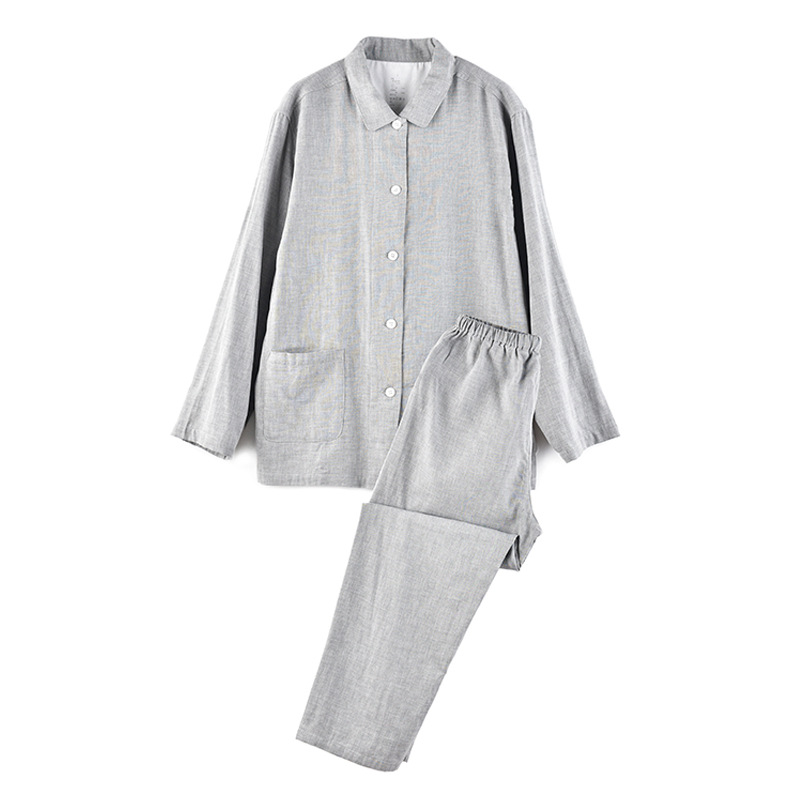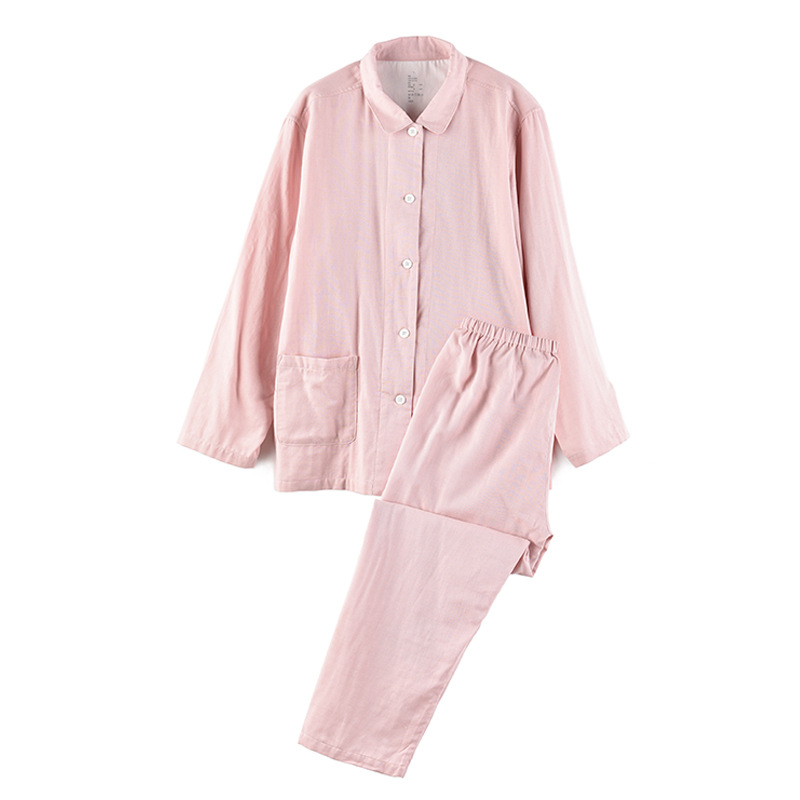일본식 인쇄되지 않은 순면 더블 레이어 거즈 잠옷, 옆 솔기 없음, 남성과 여성을 위한 가정복, 봄 여름 순면 거즈 생활복