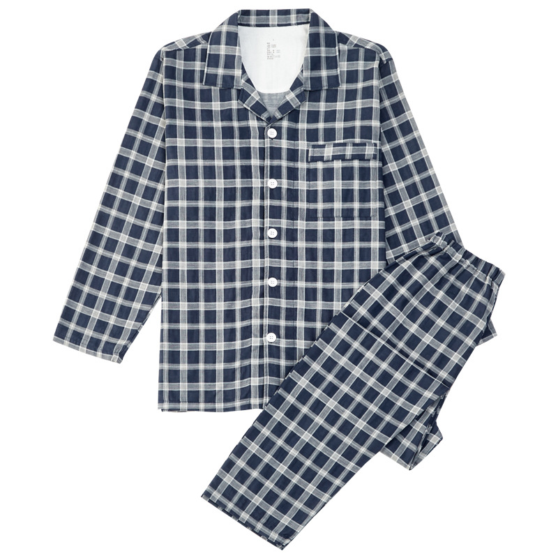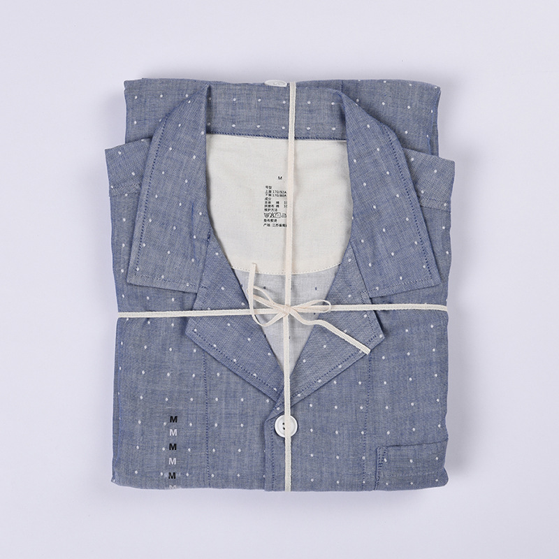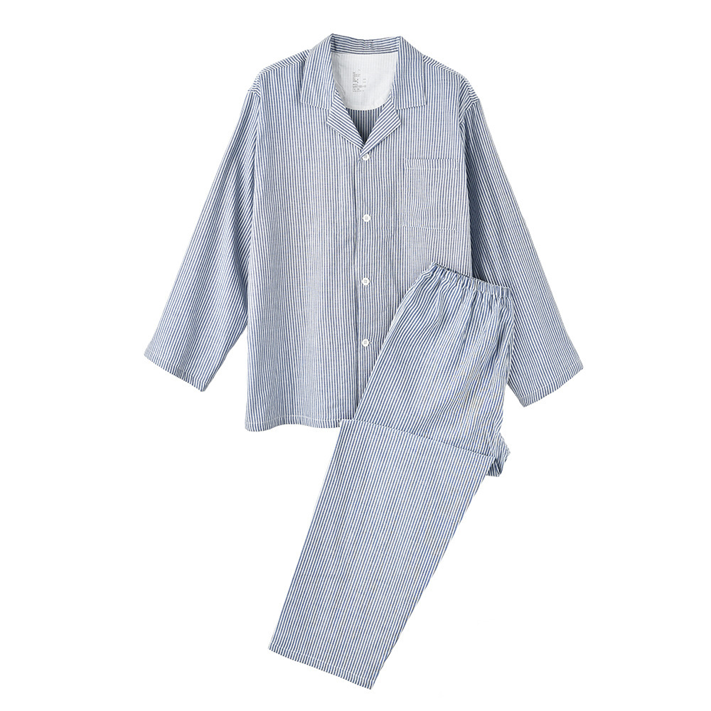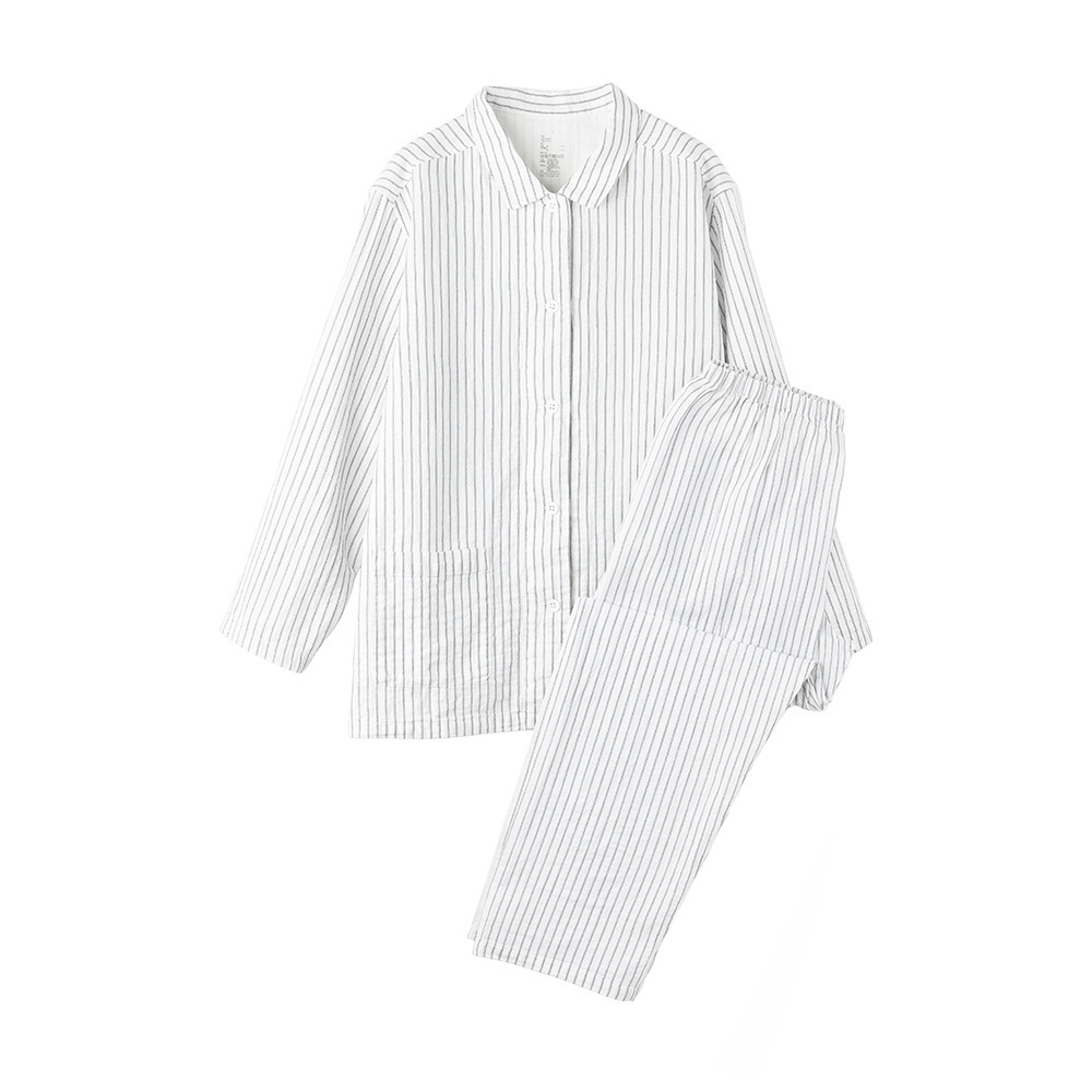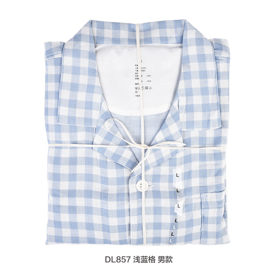 일본식 인쇄되지 않은 순면 더블 레이어 거즈 잠옷, 옆 솔기 없음, 남성과 여성을 위한 가정복, 봄 여름 순면 거즈 생활복스토어 가기