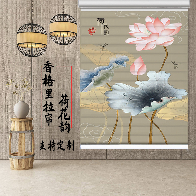 중국어 인쇄 샹그릴라 커튼 차양 욕실 거실 침실 베네치아 커튼 리프팅 전기 펀치 프리 세트스토어 가기