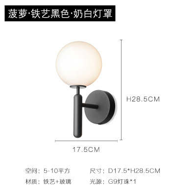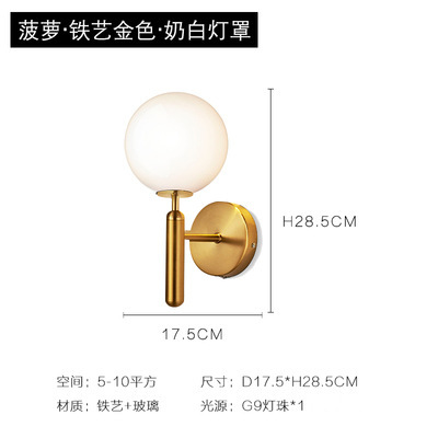 북유럽 현대 거실 침실 led 벽 램프 패션 간단한 금속 스타일 통로 발코니 유리 공 벽 램프