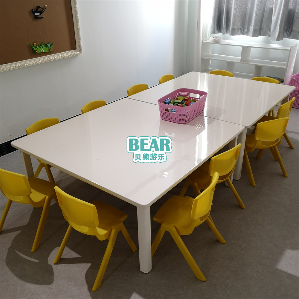 유치원 어린이 책상과 의자 고급 흰색 베이킹 페인트 긴 사각형 테이블 아기 학습 테이블 게임 그림 테이블 조기 교육 정원스토어 가기