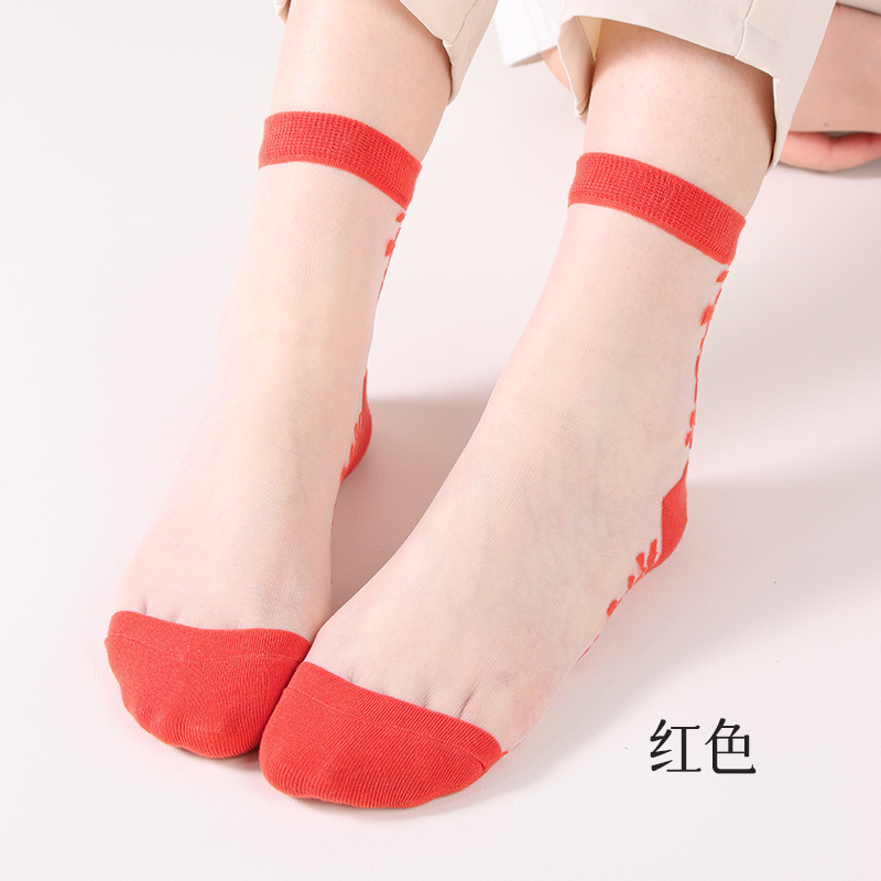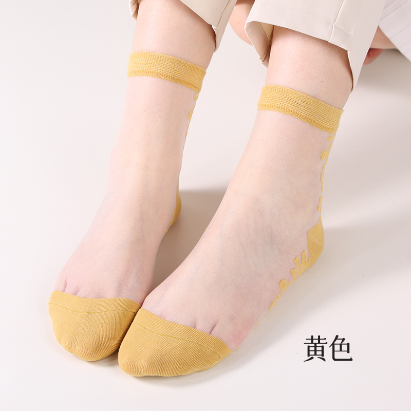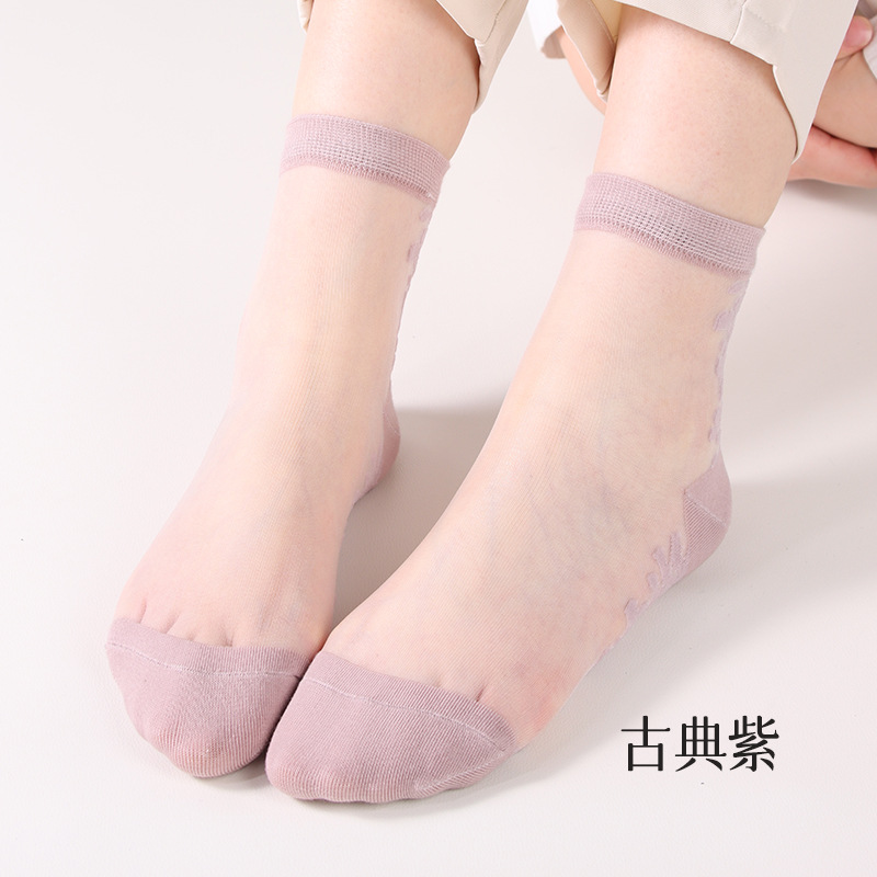 마스터 카드 봄과 여름 새로운 패션 통기성 일본 캐주얼 유리 스타킹 크리스탈 실크 여성 스타킹 제조 업체 도매스토어 가기