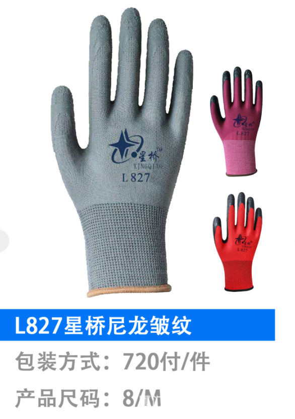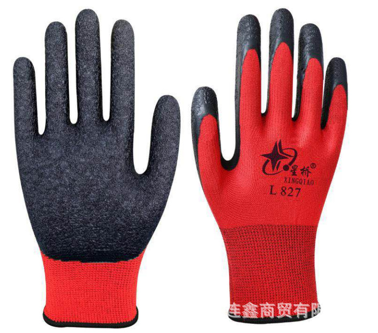 Xingqiao L827 라텍스 주름 블랙 레드 그레이 장갑 딥 장갑 노동 보호 사이트 작업 손 보호 Xingyu